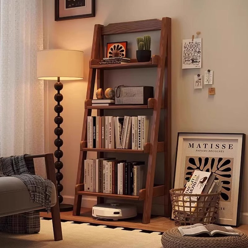 Organize and showcase your favorite pieces with the effortless style of this modern minimalist 4-tier display shelf. Expertly crafted from solid pine wood in natural or walnut finishes, it features a sturdy pine frame and eco-friendly paint for a sustainable, high-quality feel. The space-efficient ladder design provides durable multi-level storage, making it a perfect functional accent for living rooms, home libraries, or creative display spaces