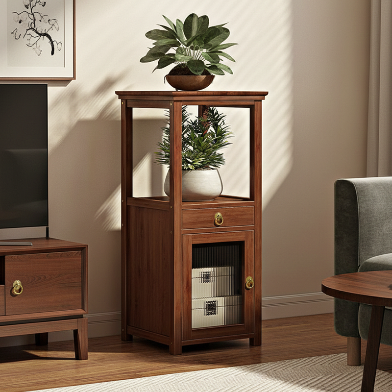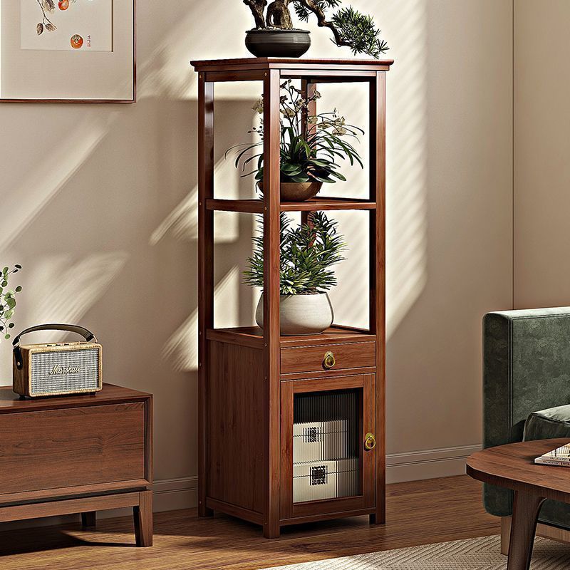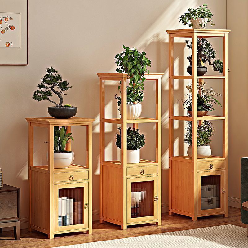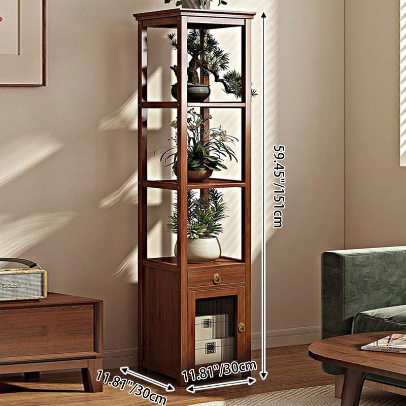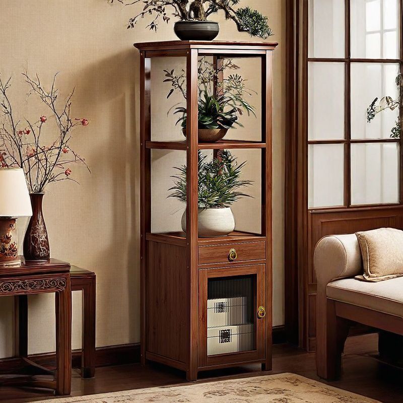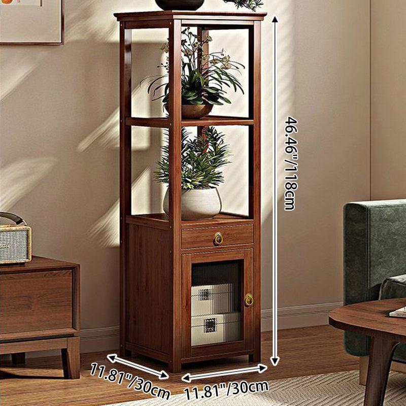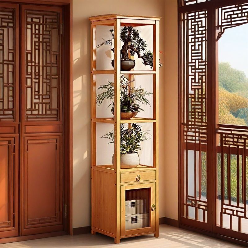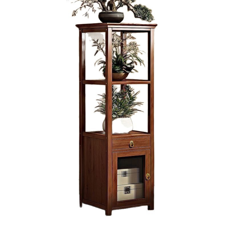 Traditional Chinese Square Nan Bamboo MDF Acrylic Display Rack 1/2/3/4-Tier For Living Room