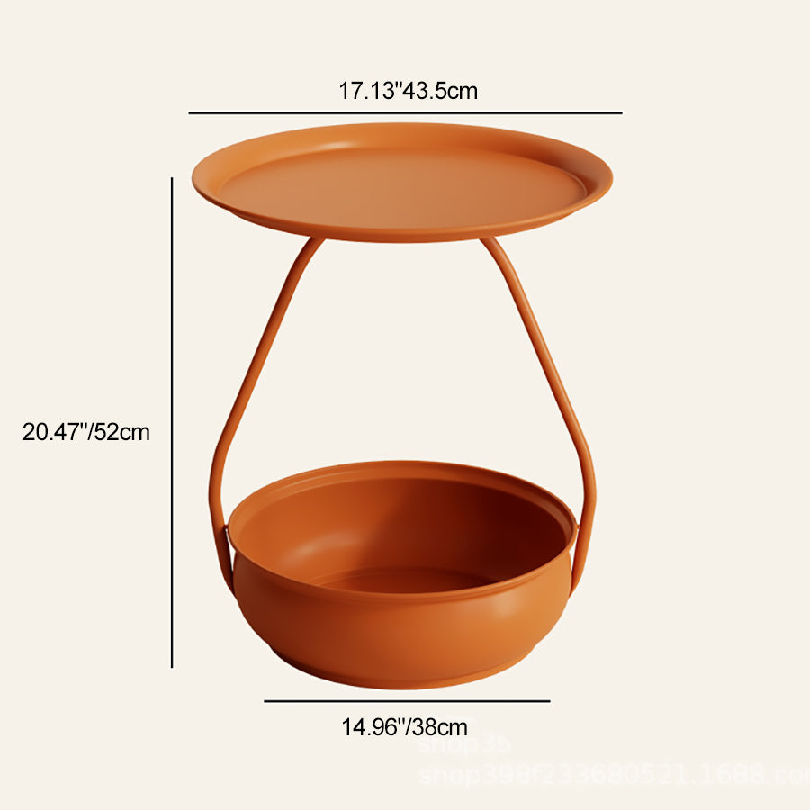 Elevate your space with this contemporary Nordic round side table, crafted from durable iron and carbon steel, featuring a 2-tier design with a large-capacity storage basket and protective raised edges. Available in blue, gray, orange, and black, it's perfect for both living rooms and bedrooms.