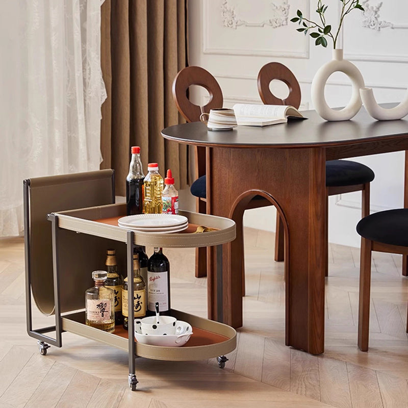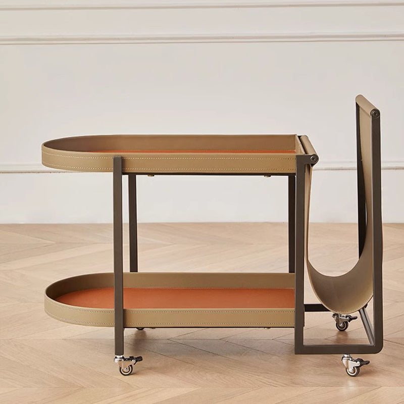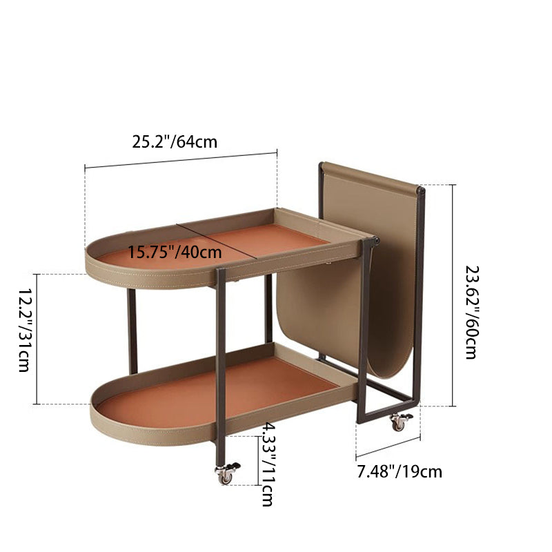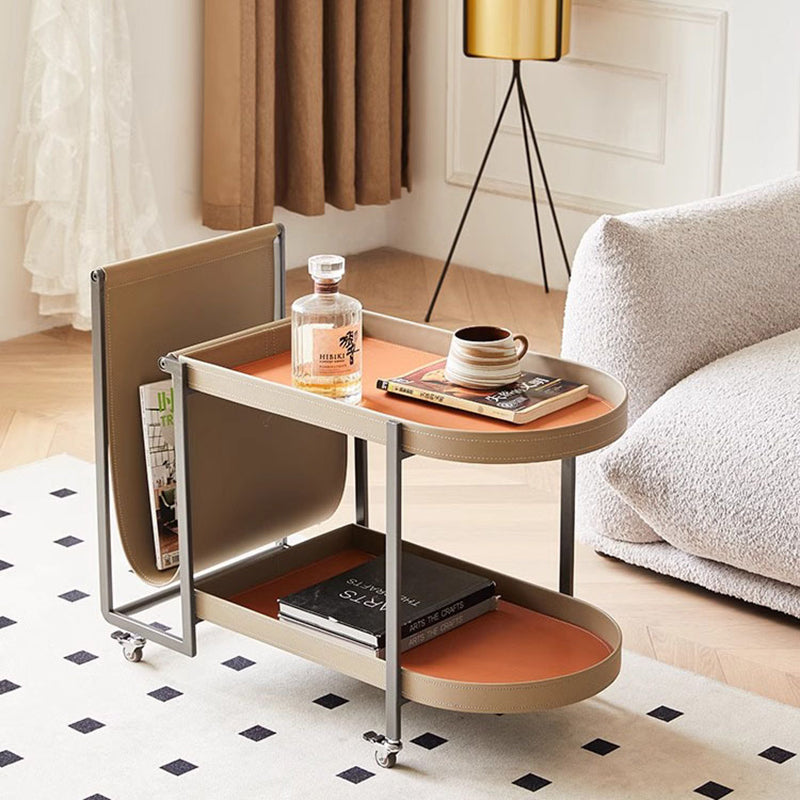 Contemporary Nordic Removable Rectangular Round Corner Stainless Steel Leather End Table 2-Tier For Living Room