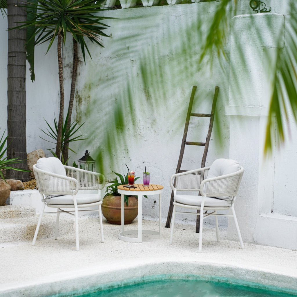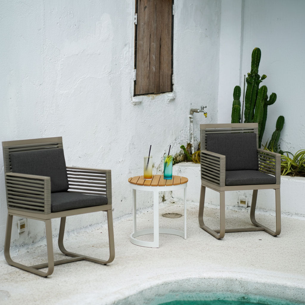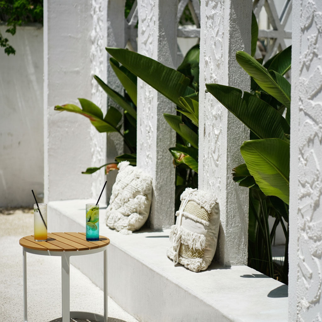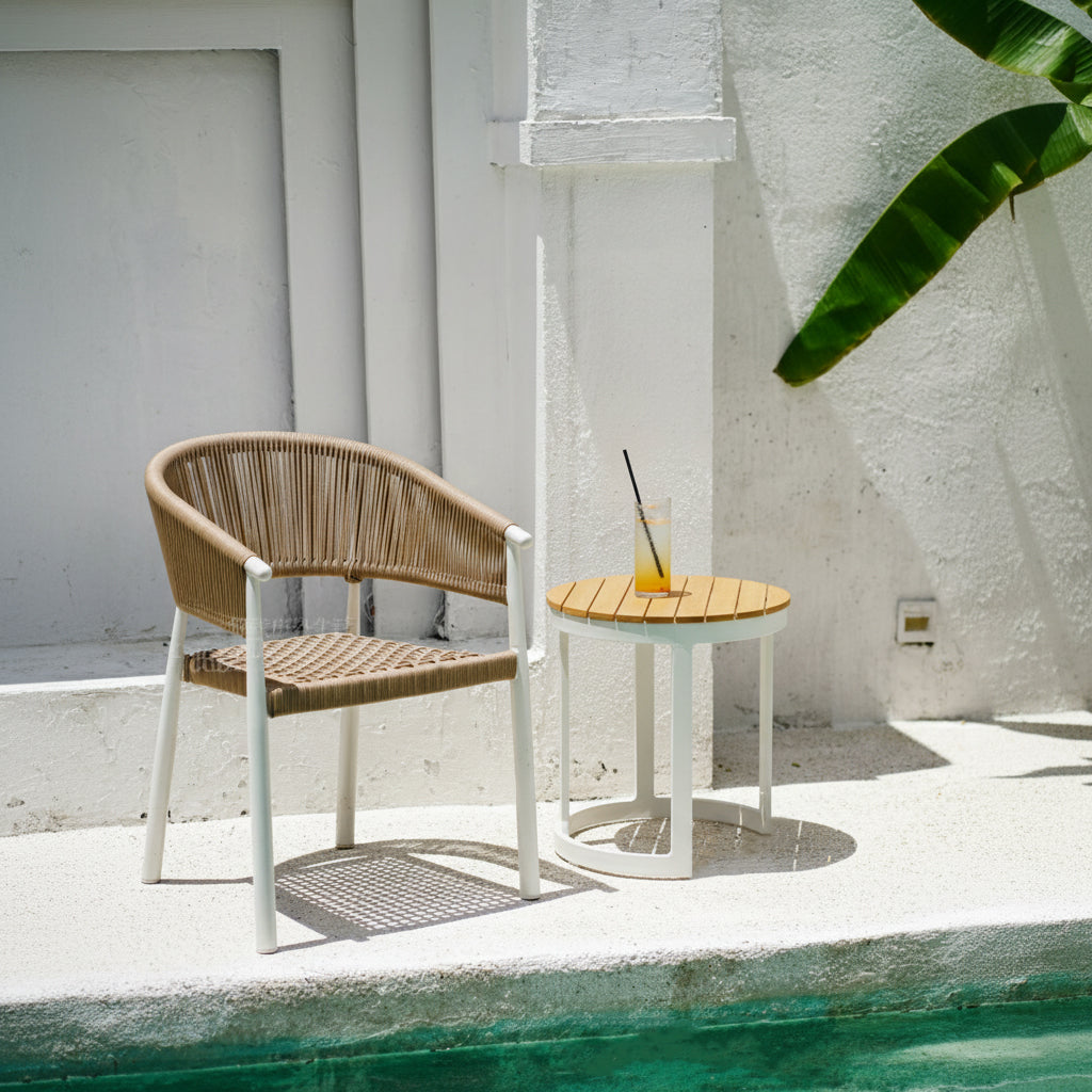 - Natural Teak Wood Top: Made from high-quality natural teak, showcasing unique wood grain patterns that add warmth and charm.