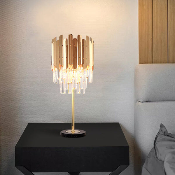 European Gold Stainless Steel Crystal 1-Light Table Lamp
