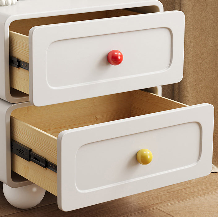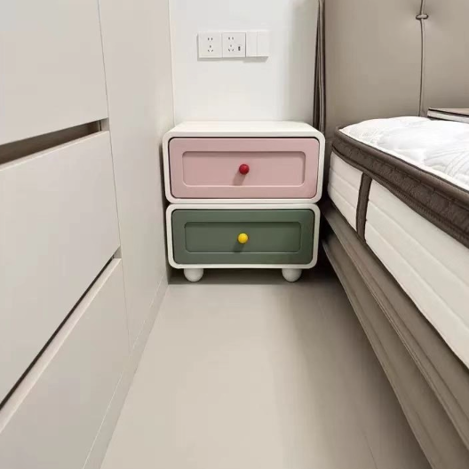 This Contemporary Creative nightstand features solid wood, cat scratch-resistant leather, and metal legs for a stylish yet durable design. Available in white, black, pink, and green, it offers two spacious drawers, smooth rounded corners for safety, and sturdy support—perfect for modern or kidsâ€?bedrooms.