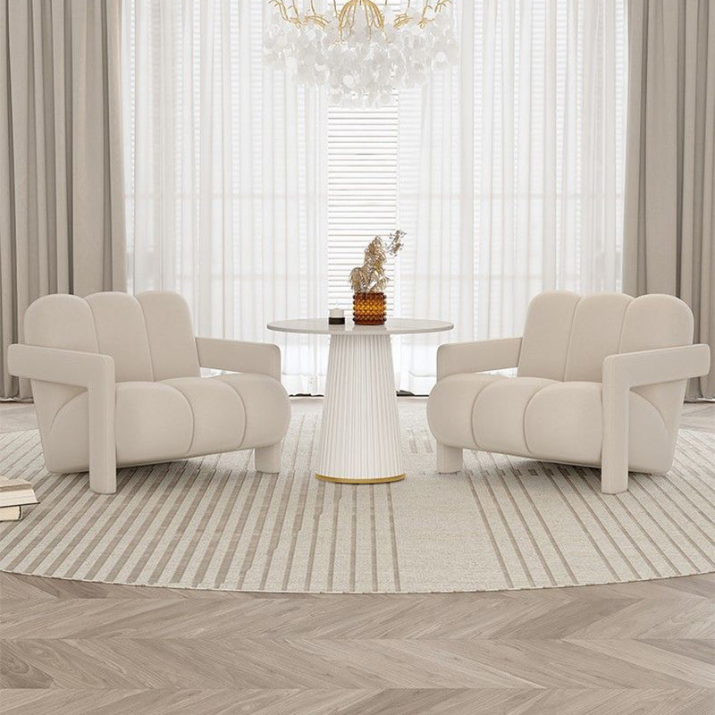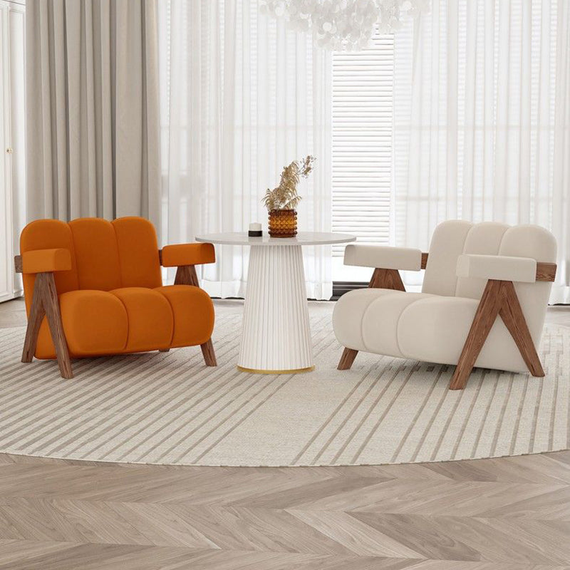 This contemporary creative lounge chair features a soft suede fabric with a smooth, breathable texture for ultimate comfort. Designed with V-shaped legs and a wavy square silhouette, it comes in beige, black, green, and orange—complete with supportive backrest and armrests, making it perfect for any living room or modern seating area.