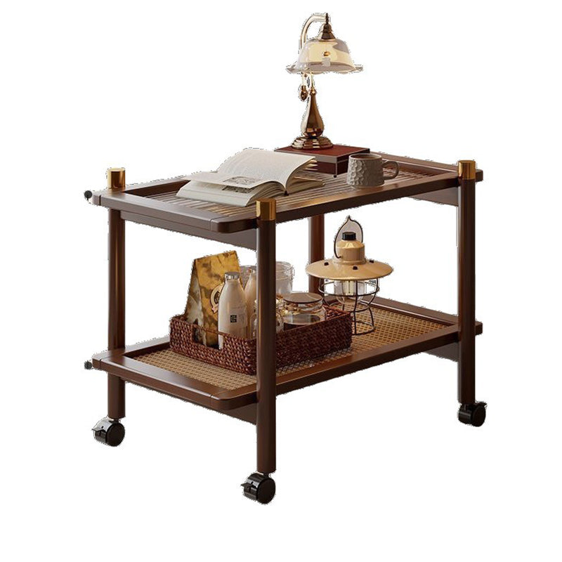 This traditional Chinese coffee table is crafted from nan bamboo, plastic rattan, and acrylic with a rectangular mobile design in walnut finish. Featuring a 2-tier layout with large-capacity storage and easy access, it brings both elegance and functionality to your living room.