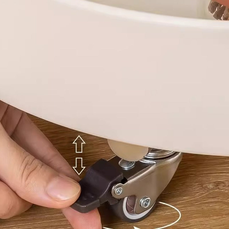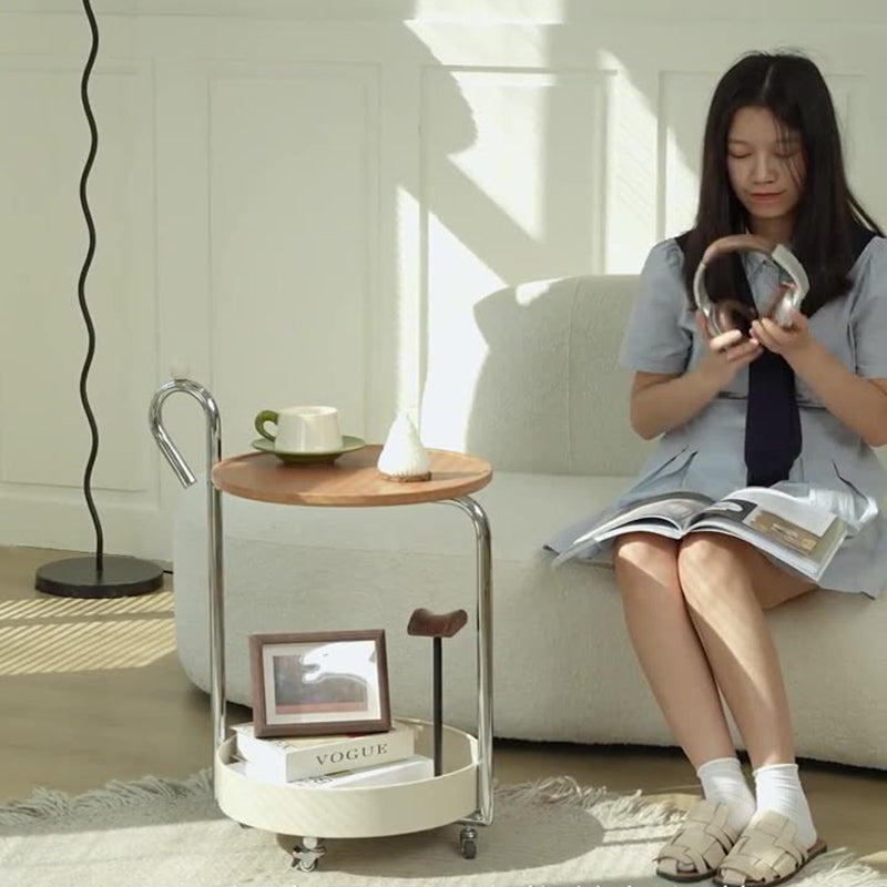 This traditional Chinese round side table is crafted from premium medium density fiberboard and metal, offering a sturdy yet elegant design. It features two open storage tiers and 360° swivel wheels with brakes for smooth mobility and stability. Available in black, white, and natural wood finishes—ideal as a functional end table or portable storage accent in your living room.