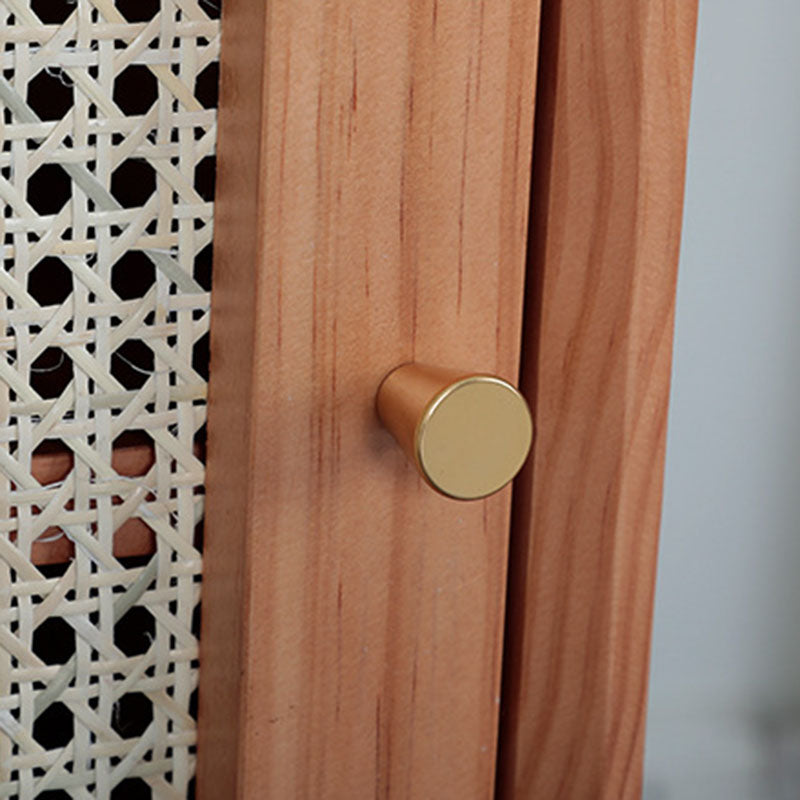 This Traditional Chinese nightstand combines solid wood with natural rattan for a refined, breathable texture. Featuring elegant handles, partitioned storage, and generous capacity, it’s available in cherry and walnut finishes—perfect for adding both warmth and functionality to any bedroom space.