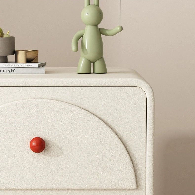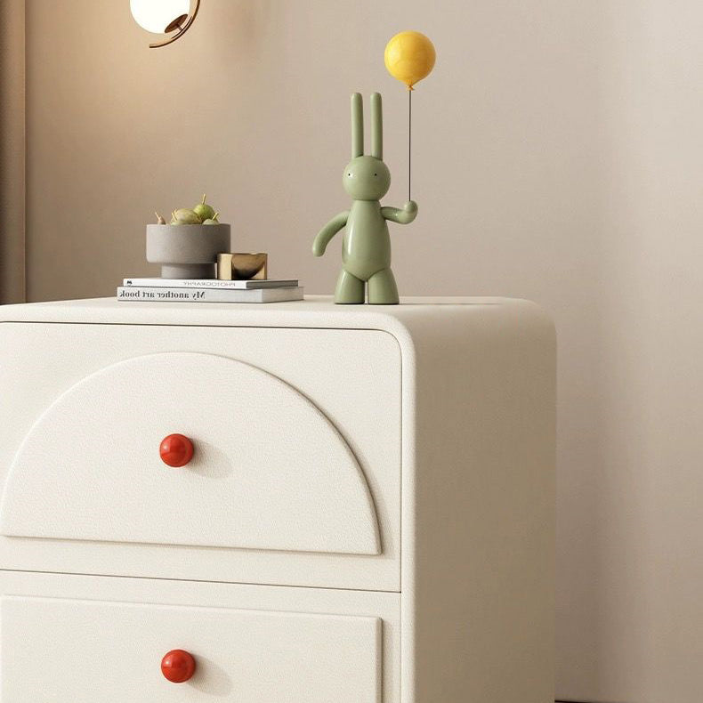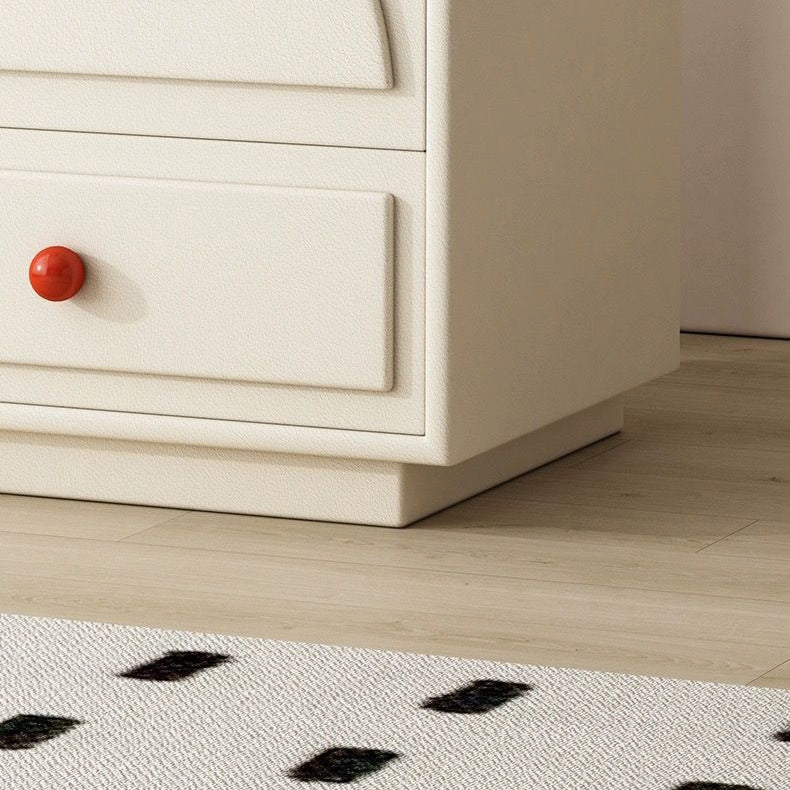 This Traditional French nightstand features a semi-round square silhouette crafted from solid wood, microfiber leather, and metal for lasting elegance. Available in cream white, black, pink, and khaki, it includes two smooth-sliding drawers with premium hardware rails, providing quiet, spacious storage and a refined touch for any bedroom.