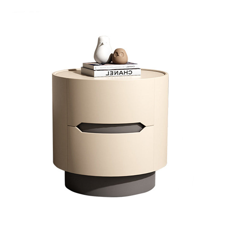 This traditional French-style nightstand features a smooth matte finish solid wood construction with elegant round cylindrical design. Equipped with two spacious drawers for organized storage, it’s both durable and scratch-resistant. Available in creamy white and light gray, perfect for adding timeless charm to modern bedrooms.
