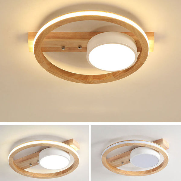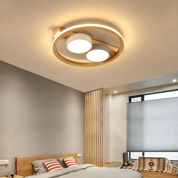 Scandinavian Minimalist Solid Wood Acrylic Round LED Flush Mount Ceiling Light