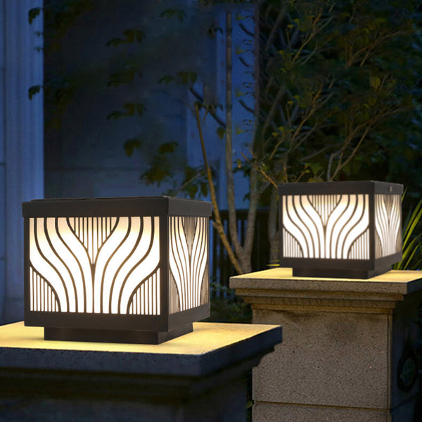 Modern Solar Patterned Stainless Steel Square Courtyard LED Path Lamp