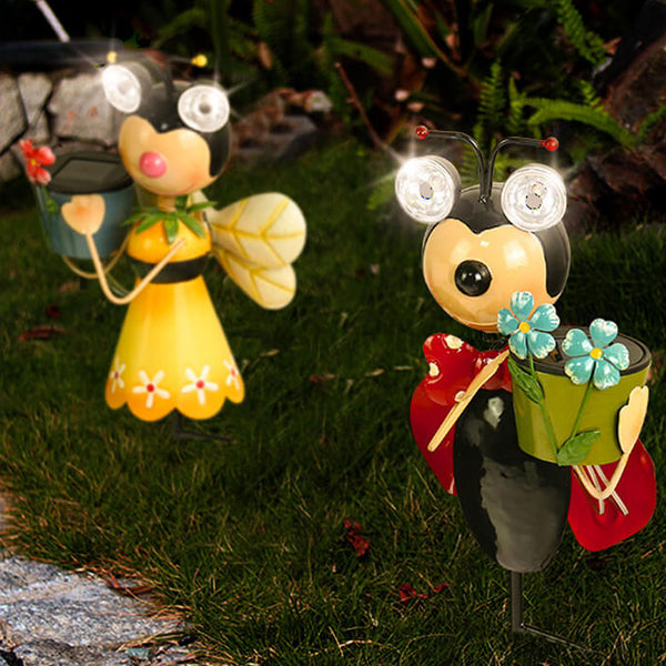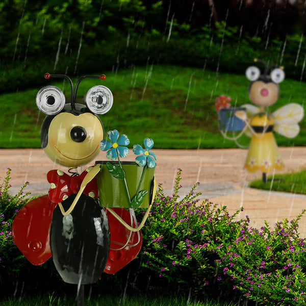 Solar Creative Bees Ladybug Iron Outdoor Patio Decorative Ground Plug Path Light