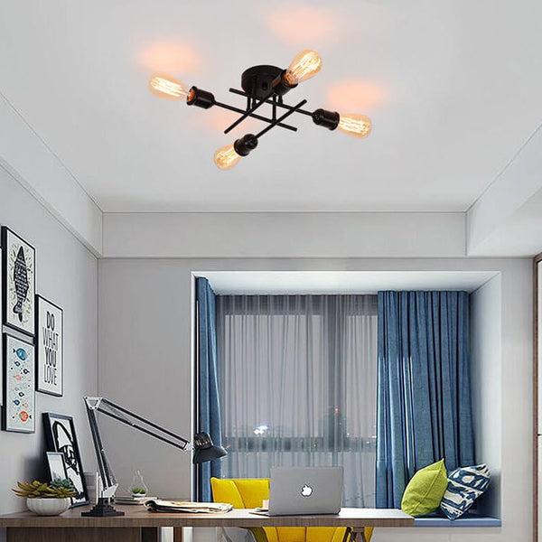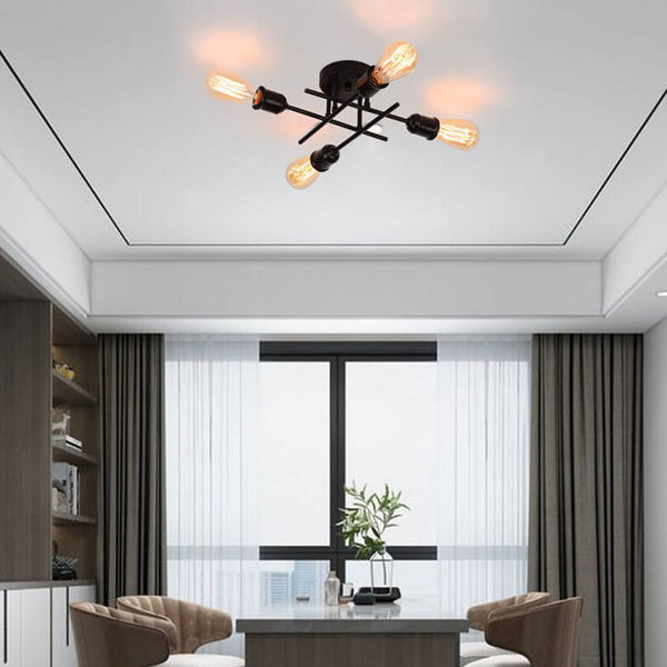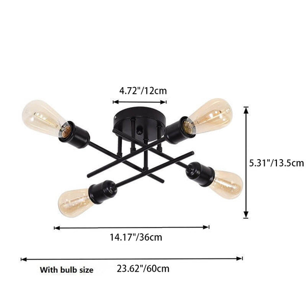 Vintage Simple Iron Bracket Glass Round 4-Light Chandelier