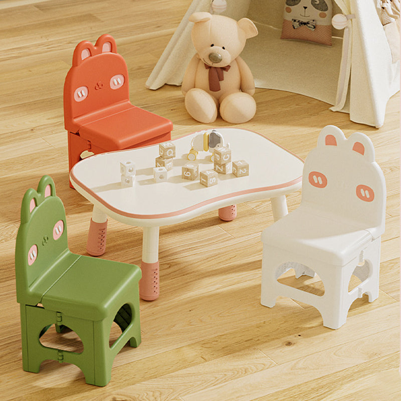 Contemporary Creative Curved Rabbit Design PP Kids Foldable Dining Chair Backrest Armless For Dining Room & Kitchen