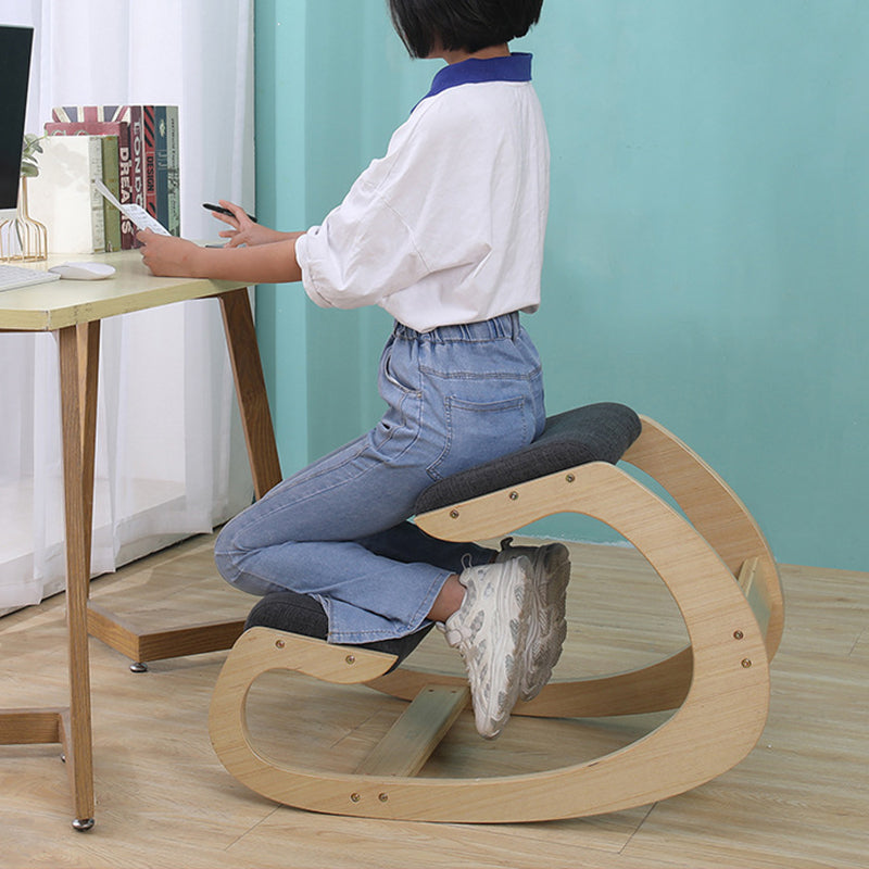 This modern minimalist ergonomic kneeling chair features a curved solid-wood frame, breathable cotton-linen cushioning, and high-density foam to promote comfortable and natural upright posture correction. The backless, armless design enhances flexibility while maintaining strong stability and long-lasting durability, making it ideal for home offices, study spaces, and workplace environments.