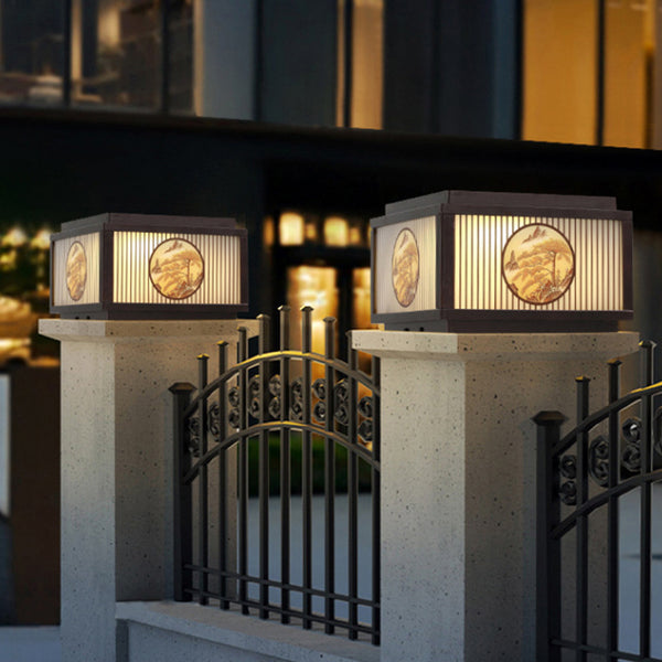 Traditional Chinese Aluminum Glass Square LED Waterproof Solar Landscape Light For Outdoor Patio