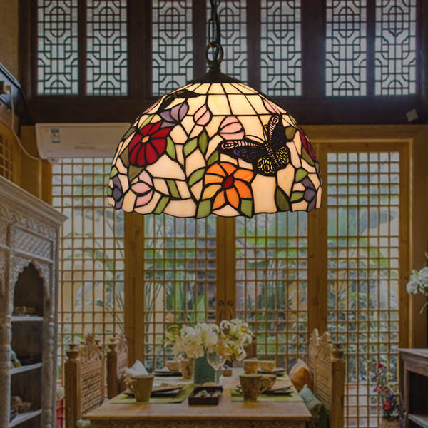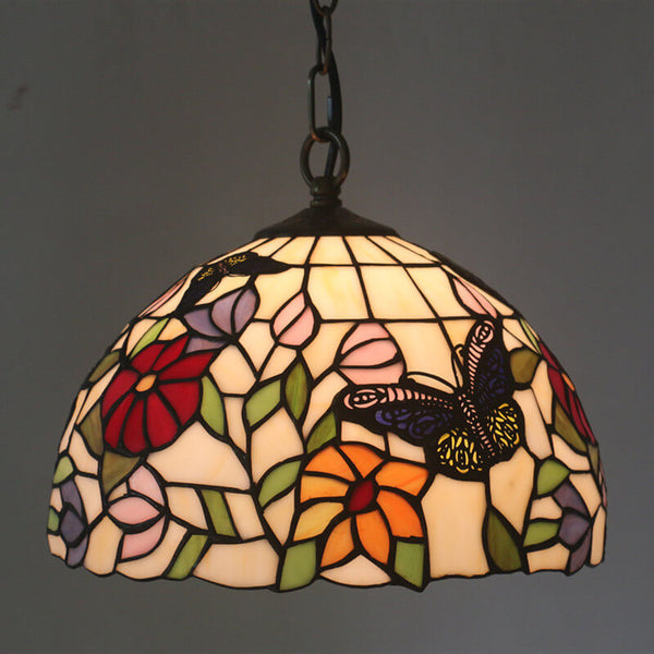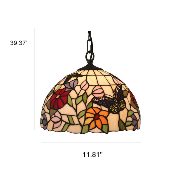 Tiffany European Butterfly Flower Stained Glass Pendant Light