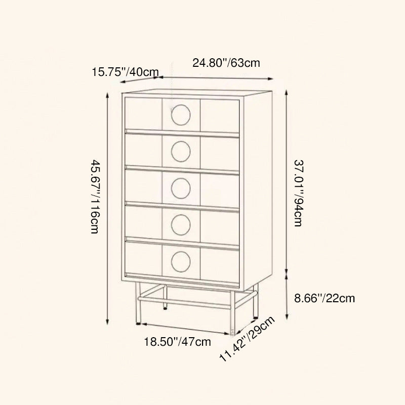 Contemporary Retro Stainless Steel Pine Wood Solid Wood Multi-Layer Board Rectangular Storage Cabinet 5-Drawer For Living Room