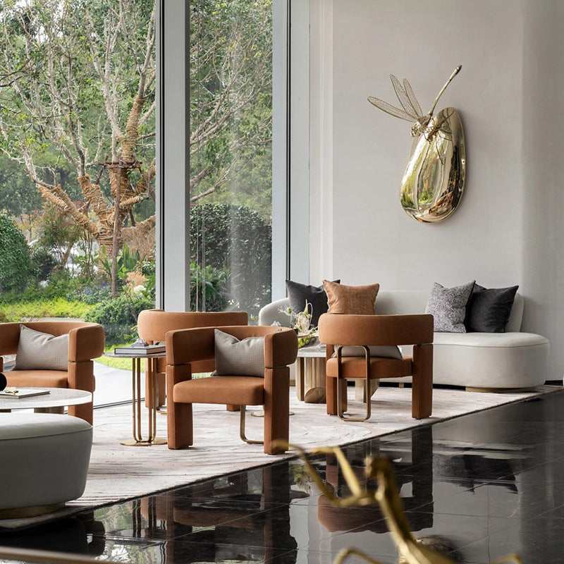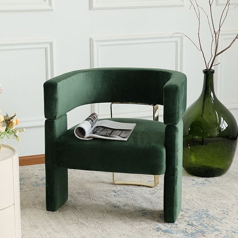 This Contemporary Scandinavian lounge chair combines plush velvet upholstery, a metal frame, and solid wood accents, featuring supportive armrests and a comfortable backrest for everyday relaxation. Designed with a responsive cushioned seat and stable, wobble-free structure, it’s available in a wide range of modern colors including gray, green, blue-white, orange yellow, black, olive green, off-white, purple, coffee, and blue—ideal for stylish living room seating.
