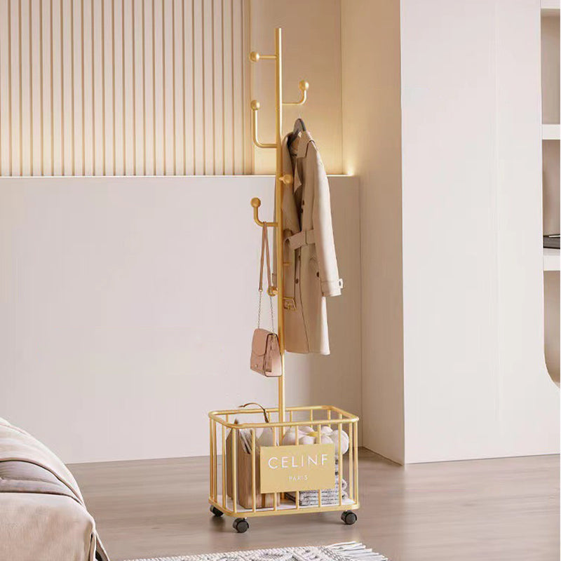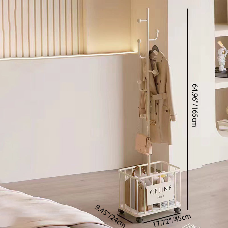 Achieve effortless organization with this modern minimalist garment rack, meticulously crafted from high-grade metal for lasting durability. The design features a spacious hanging rail paired with an integrated bottom storage shelf, perfect for keeping clothes, bags, and laundry neatly organized. Thoughtful details like rounded hooks protect your garments from snags, while the wide, stable base provides exceptional load-bearing support. Available in sophisticated white, gold, and black finishes, this rack is a stylish and functional addition to any bedroom, entryway, or living space.