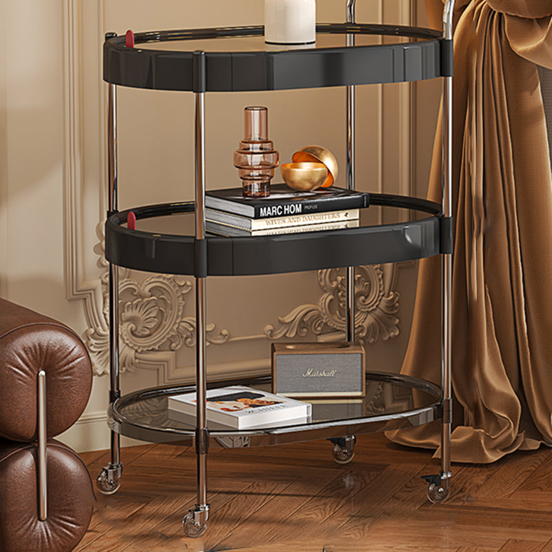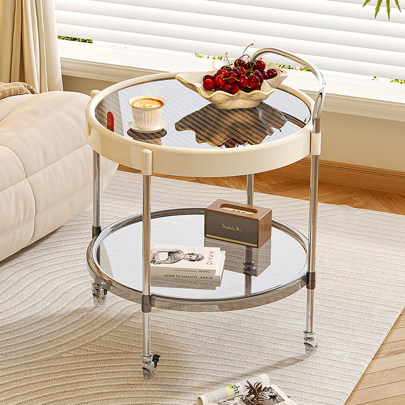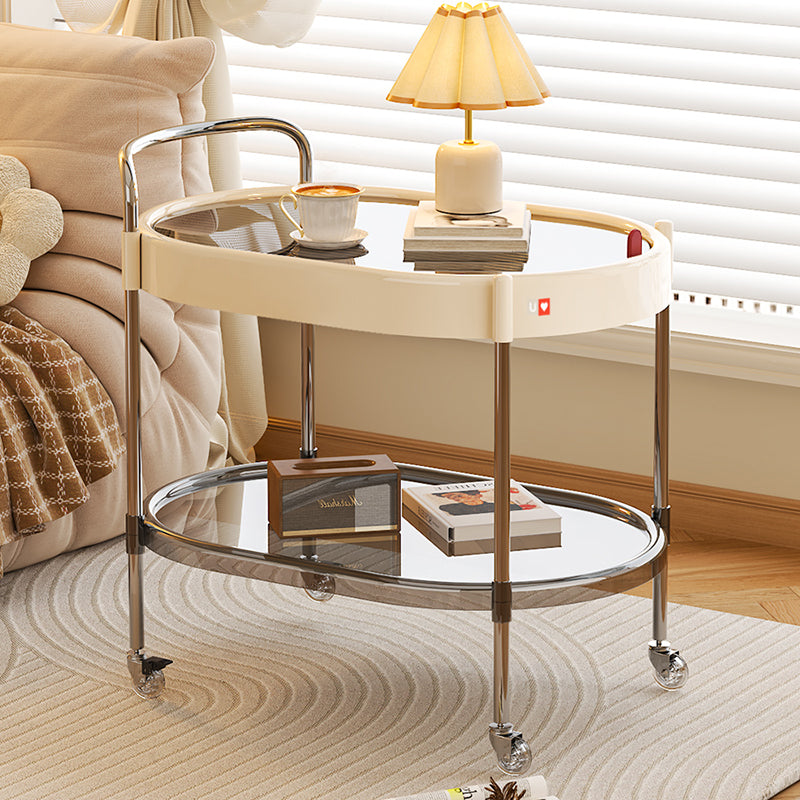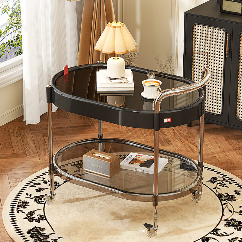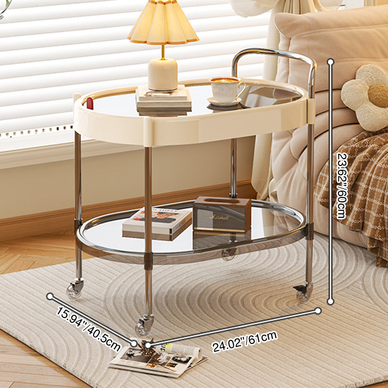 This modern minimalist movable side table features a 2/3-tier design with durable PET, ABS, and stainless-steel support, offering stable and eco-friendly storage for your living room or bedroom. Available in black or white, its round/oval silhouette and smooth-rolling wheels make it a versatile organizer and snack cart for any space.