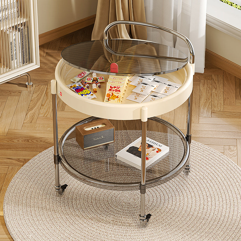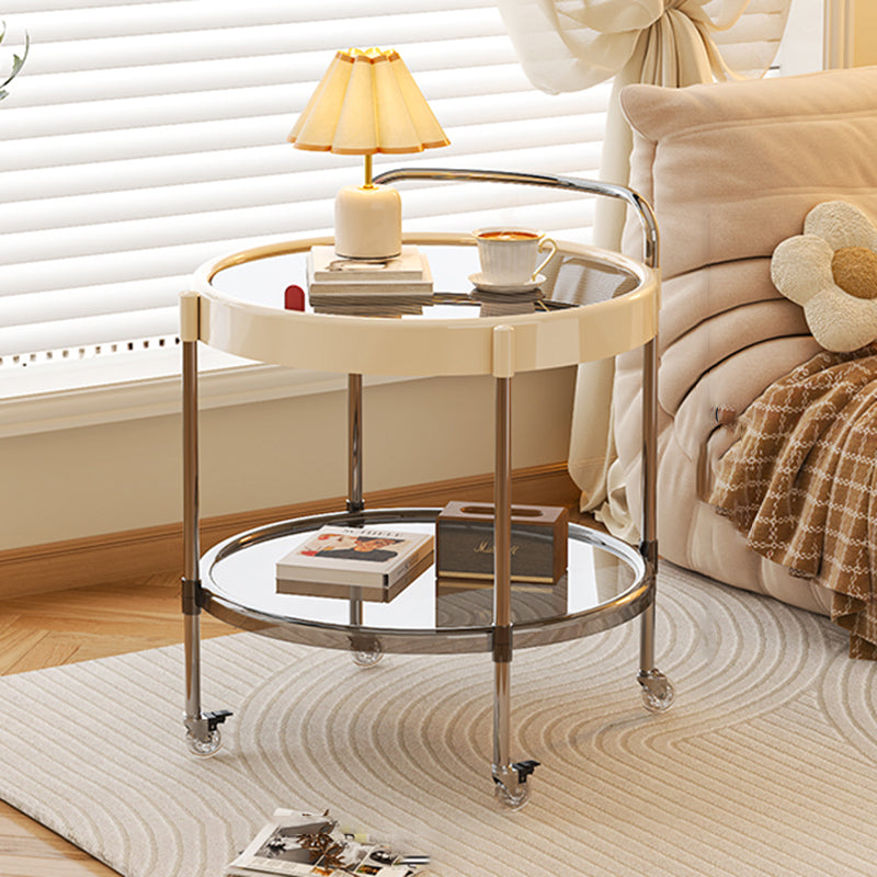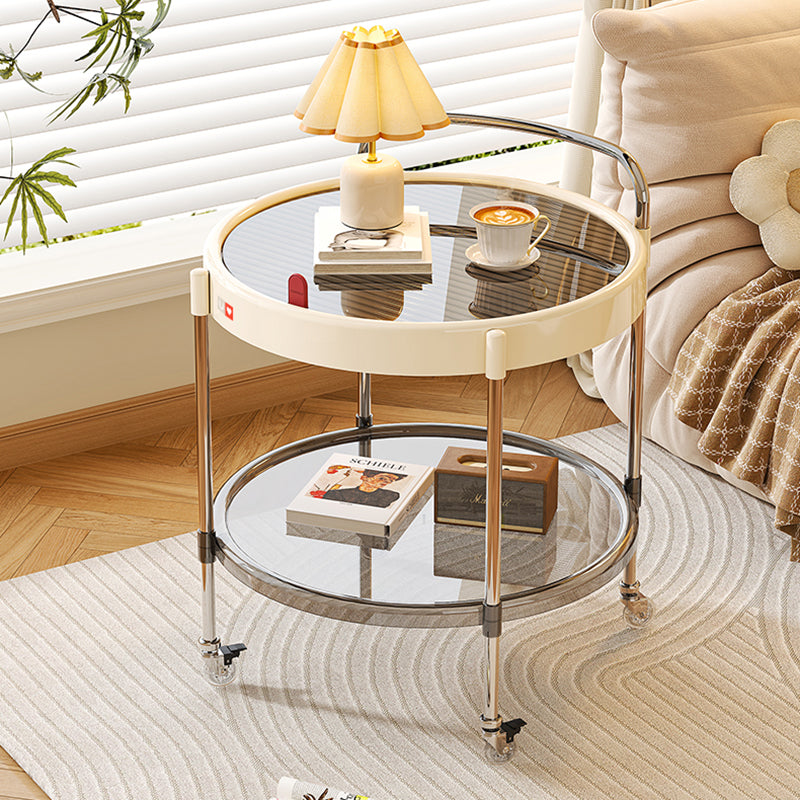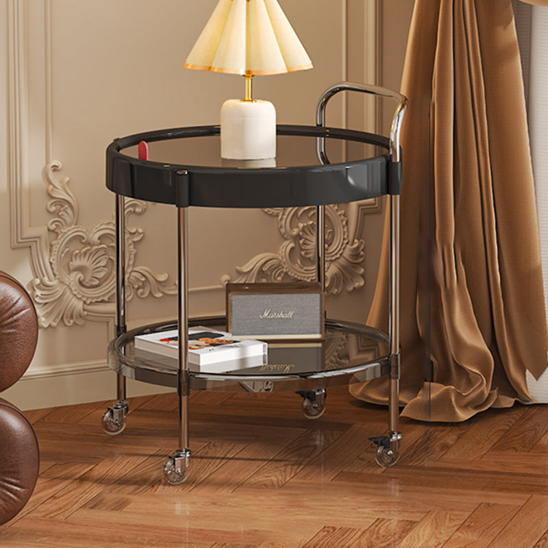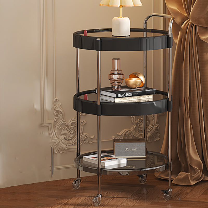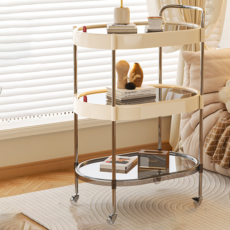 This modern minimalist movable side table features a 2/3-tier design with durable PET, ABS, and stainless-steel support, offering stable and eco-friendly storage for your living room or bedroom. Available in black or white, its round/oval silhouette and smooth-rolling wheels make it a versatile organizer and snack cart for any space.