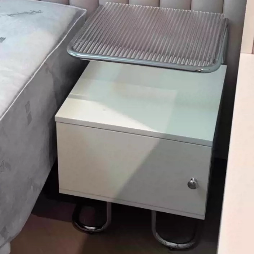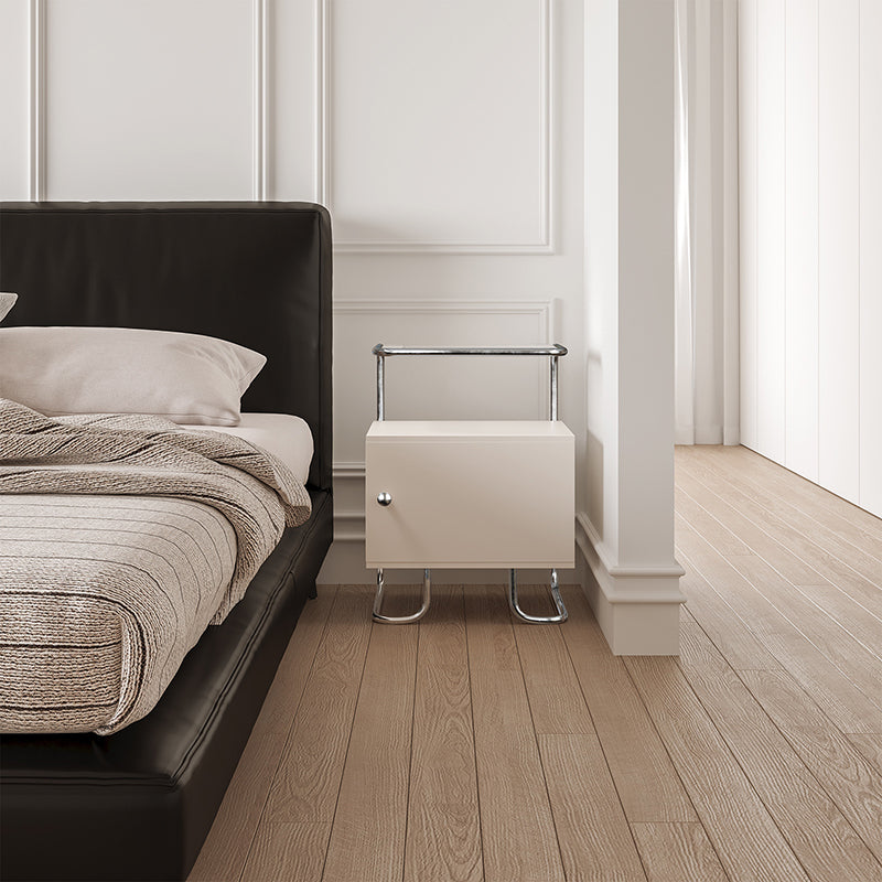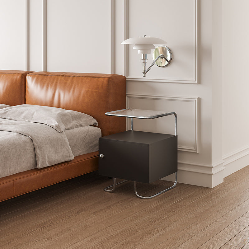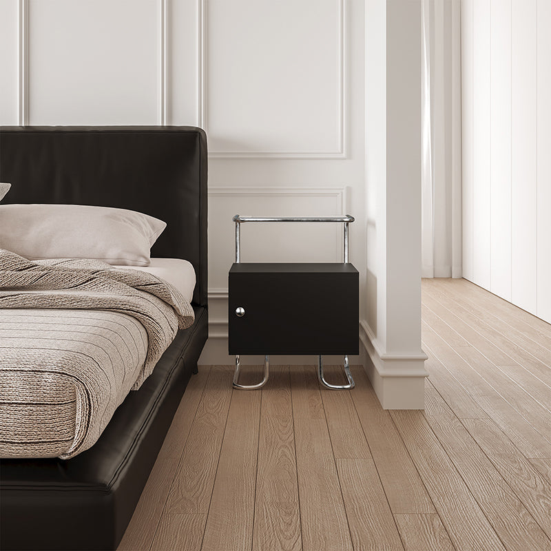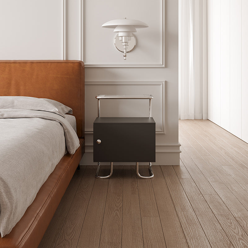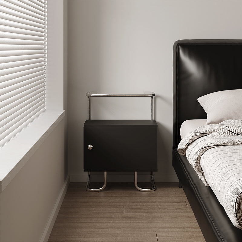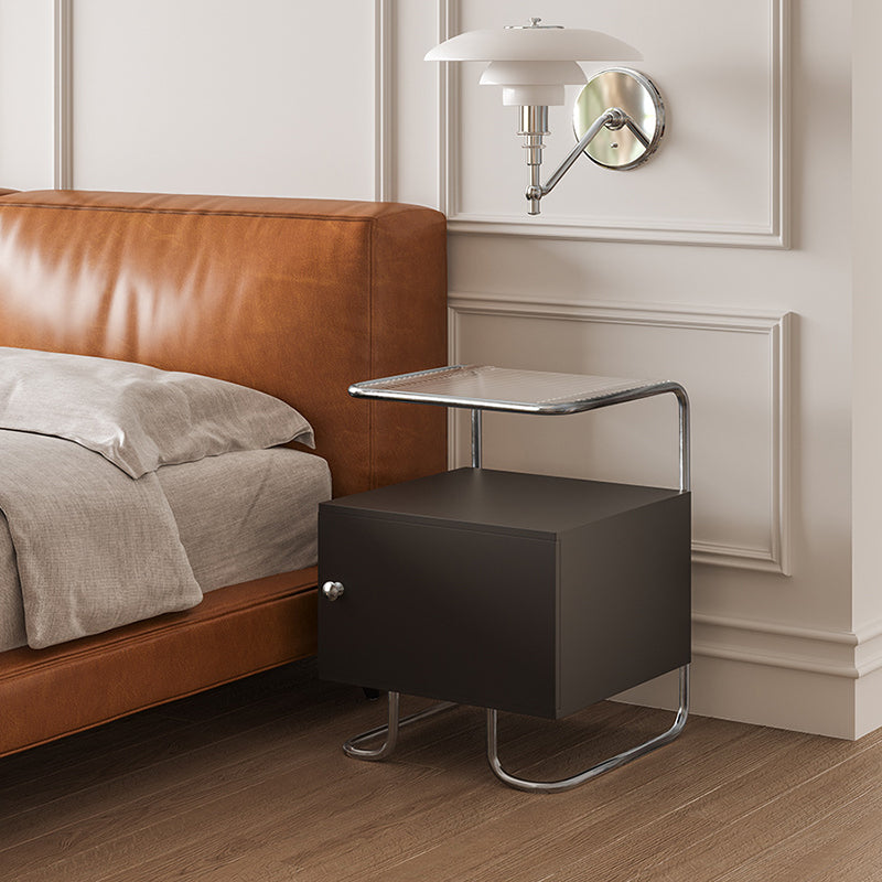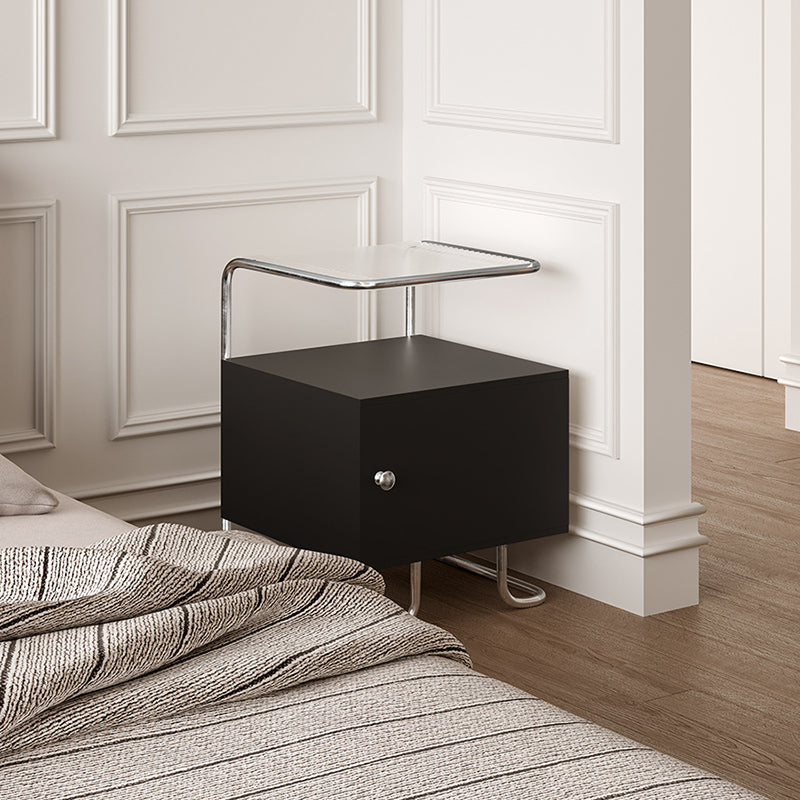 This modern minimalist nightstand combines acrylic, stainless steel, and solid wood for a stylish yet sturdy design. Featuring a curved square form and single storage cabinet, it offers stable structure and sleek aesthetics in elegant black or white—perfect for contemporary bedrooms or sofa-side organization.