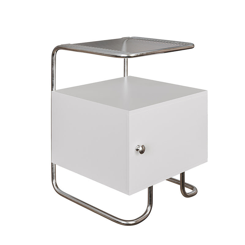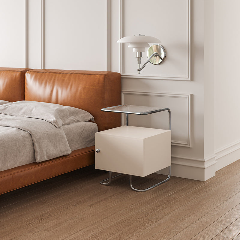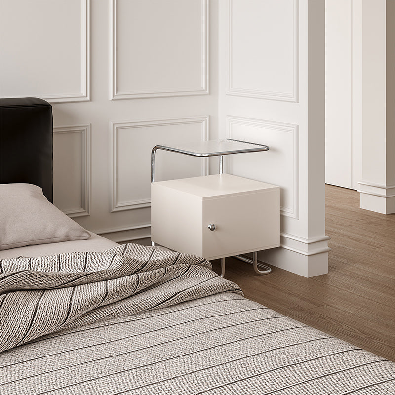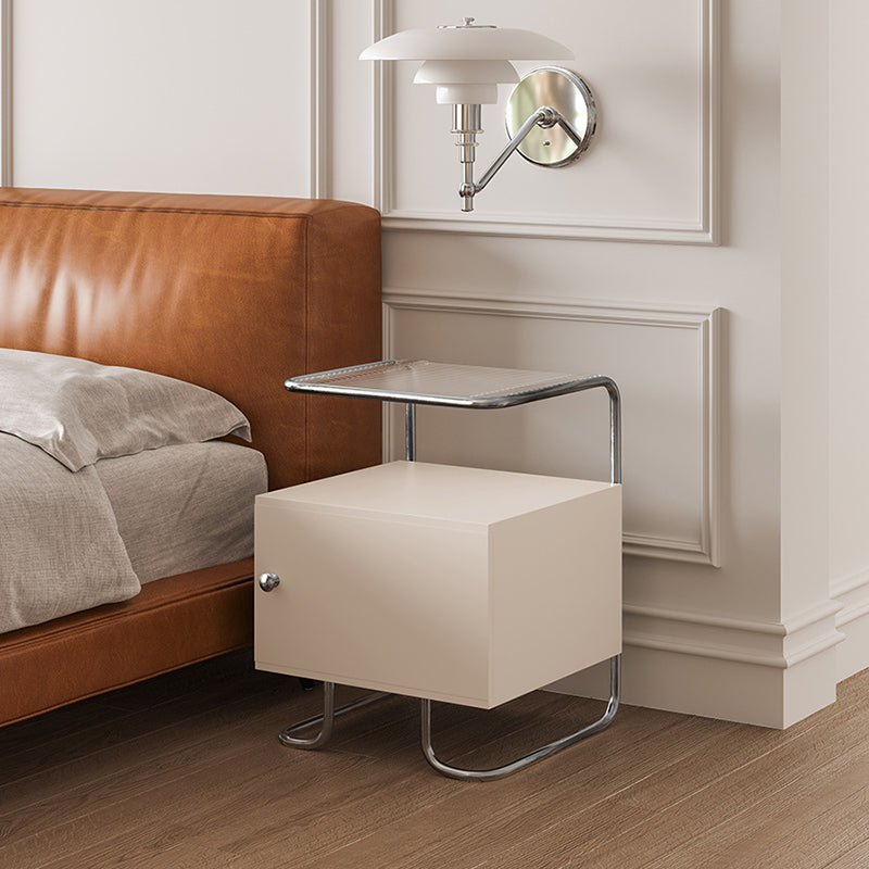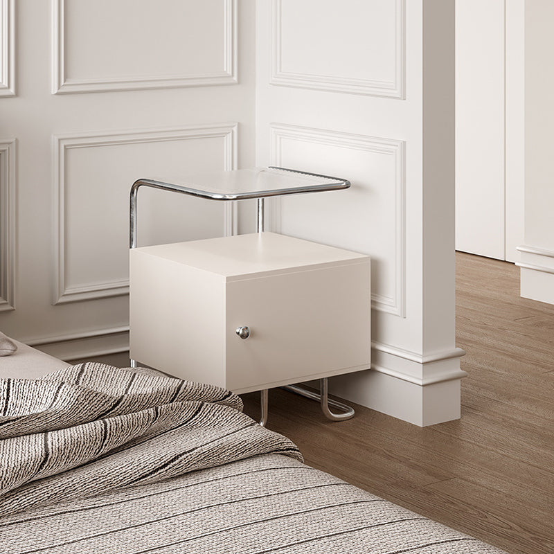Modern Minimalist Acrylic Stainless Steel Solid Wood Curved Square Nightstand With 1-Cabinet For Bedroom
