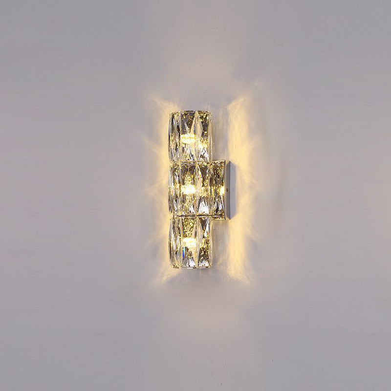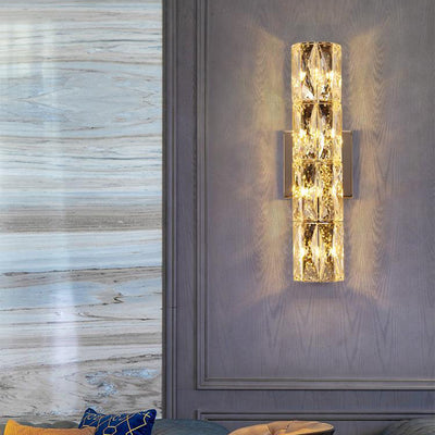 Modern Minimalist Cylindrical Stainless Steel Crystal 2/3/4/6 Light Wall Sconce Lamp For Living Room