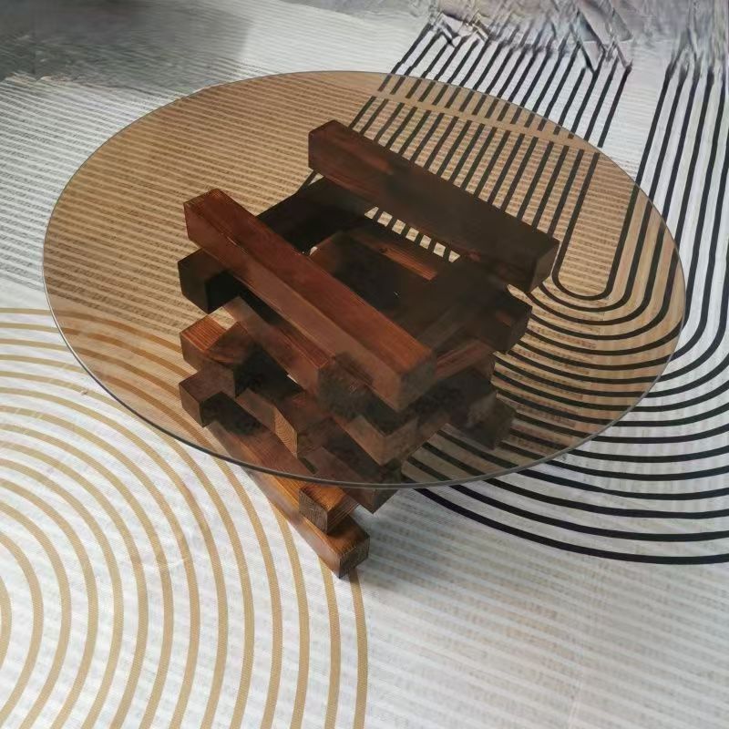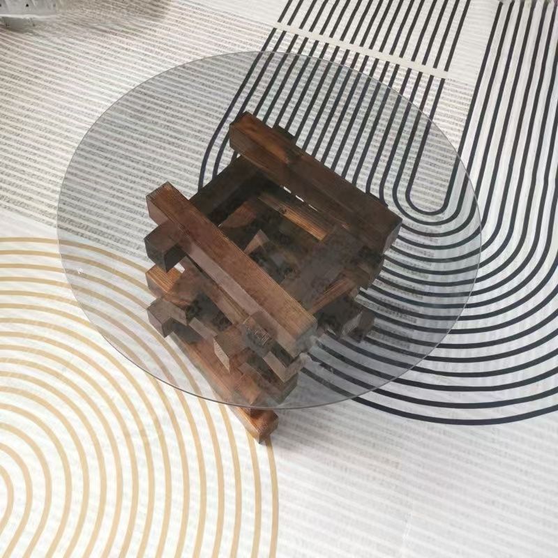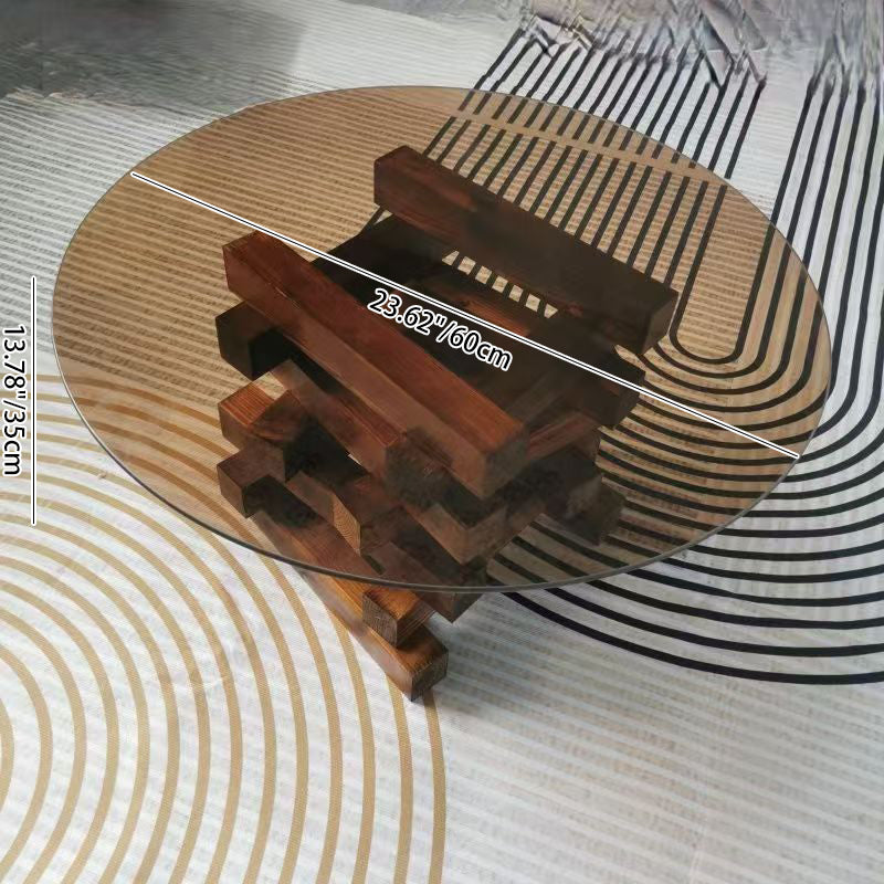 Modern Minimalist Round Solid Wood Glass Coffee Table Sturdy Corrosion-Resistant For Living Room