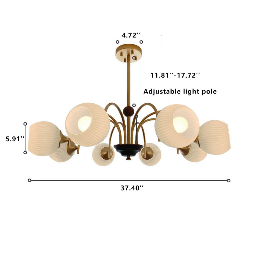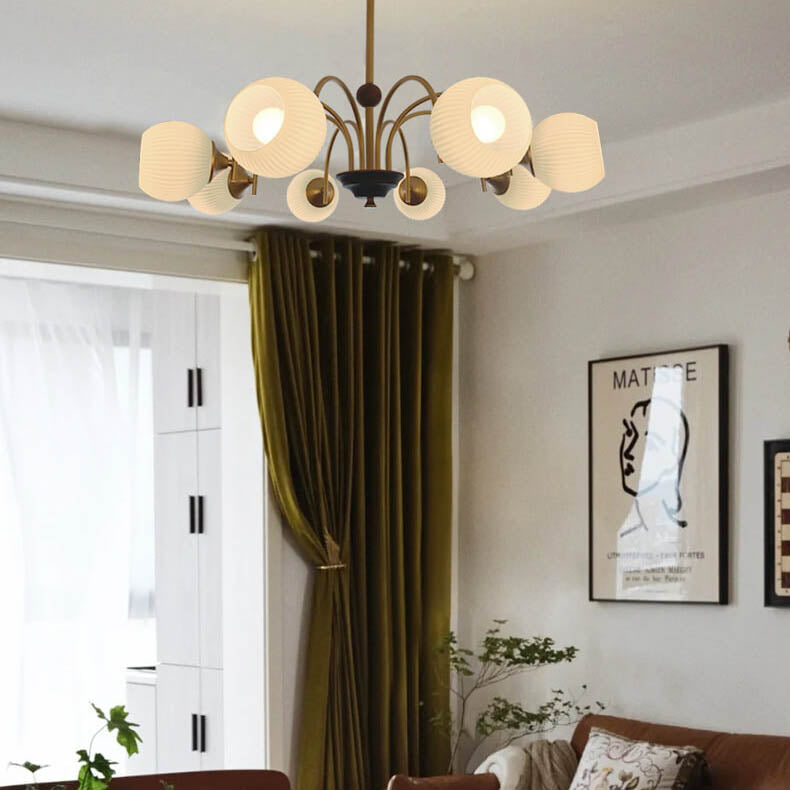 Vintage Striped White Glass 3/5/8 Light Chandelier