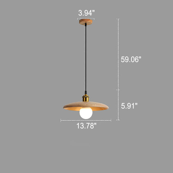 Minimalist Wooden 1-Light Saucer Shaped Pendant Light