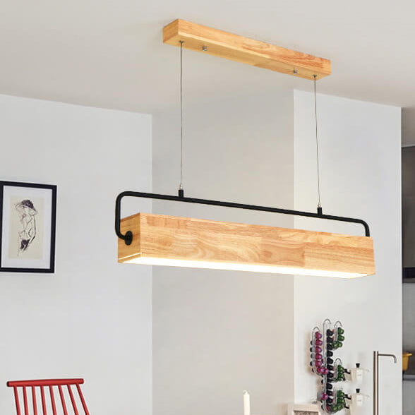 Nordic Minimalist Solid Wood Rectangular LED Chandelier