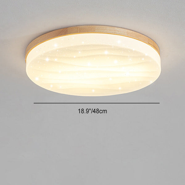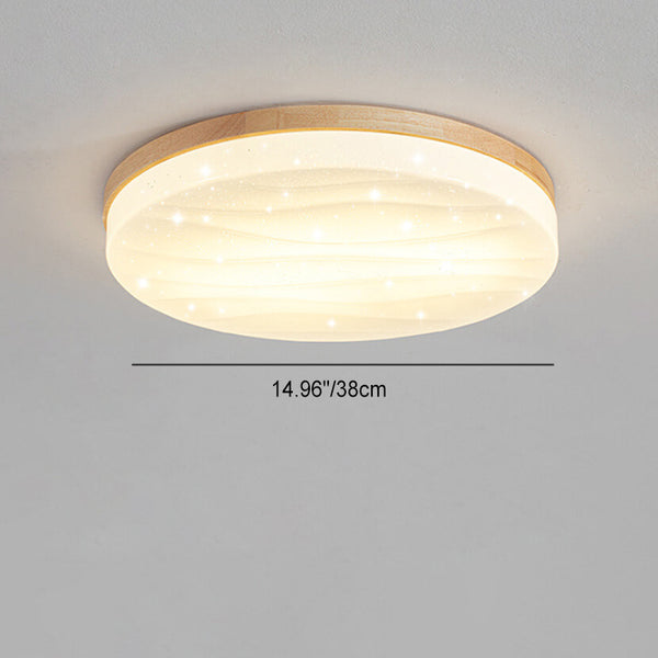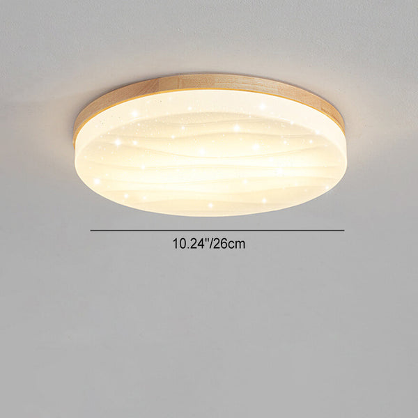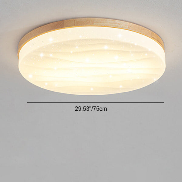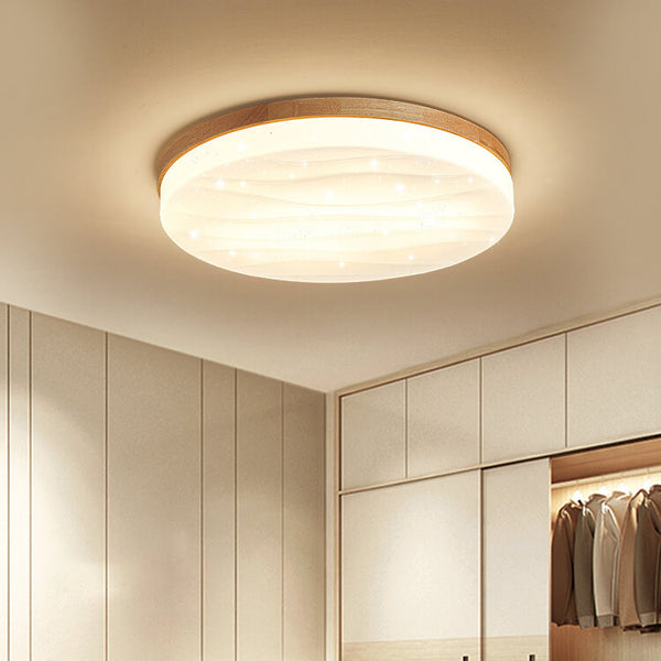Modern Minimalist Solid Wood Edging PVC Round Shade LED Flush Mount Ceiling Light For Living Room
