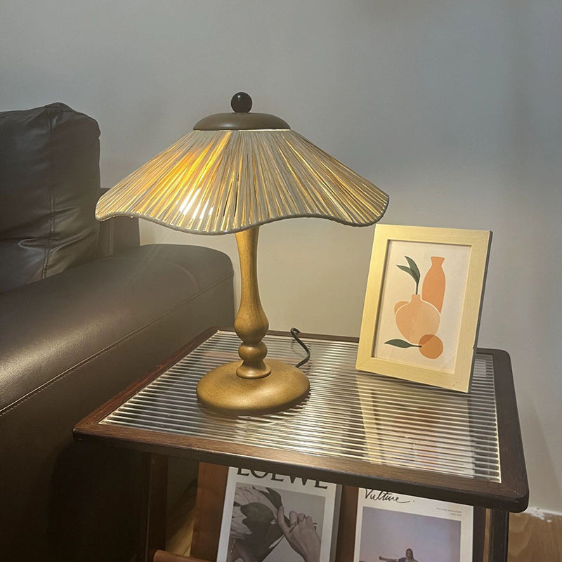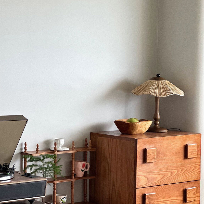 Crafted from natural woven grass, solid wood, and iron, this traditional Chinese table lamp features an umbrella-inspired round shade with soft, warm lighting. Its single light source creates a cozy, glare-free ambiance in a calming grass-tone finish—perfect for bedrooms, reading nooks, or decorative accents in boutique homestays.