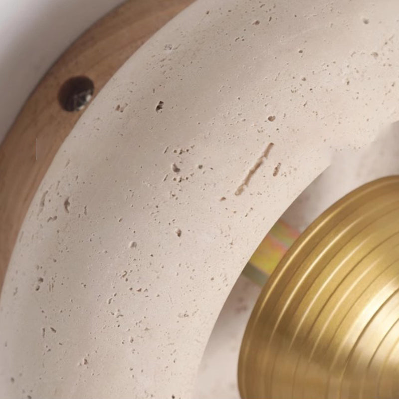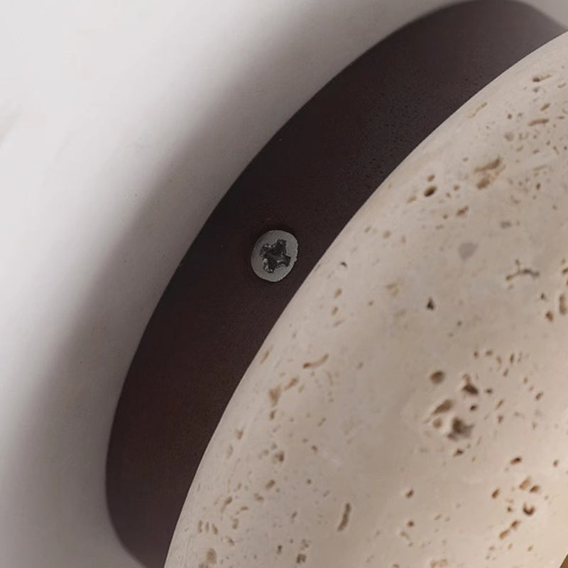 Traditional Japanese Oval Round Wood Yellow Travertine LED Semi-Flush Mount Ceiling Light For Entryway