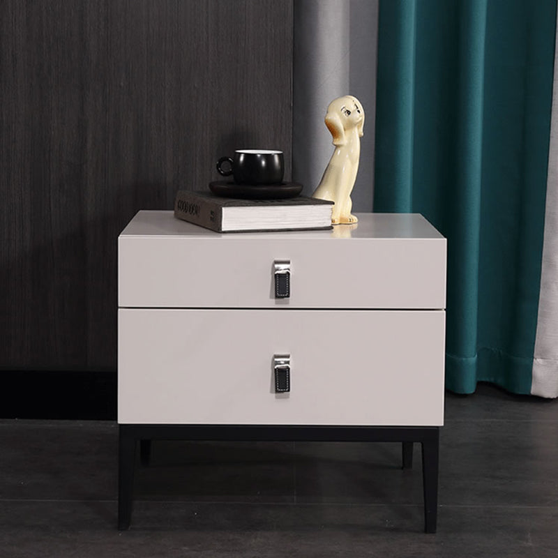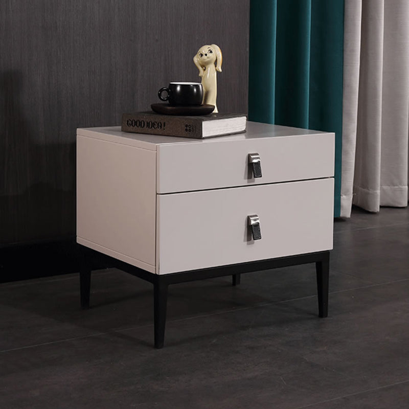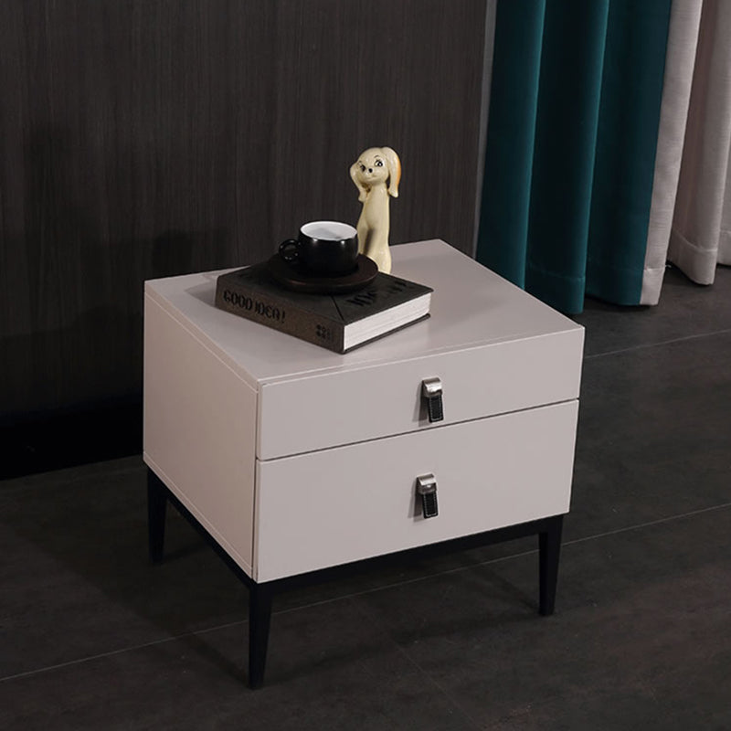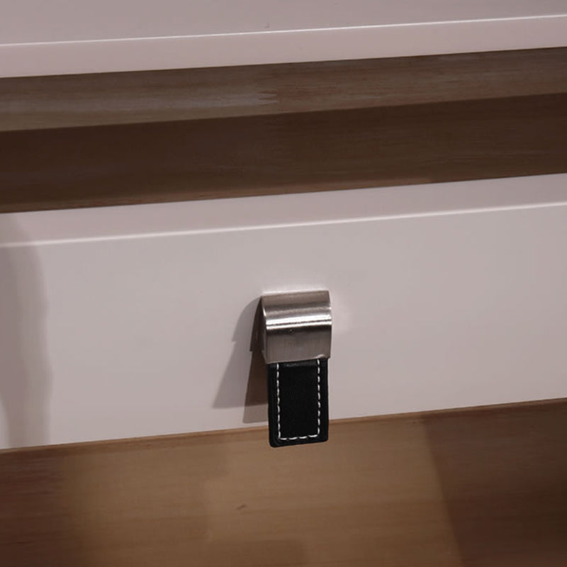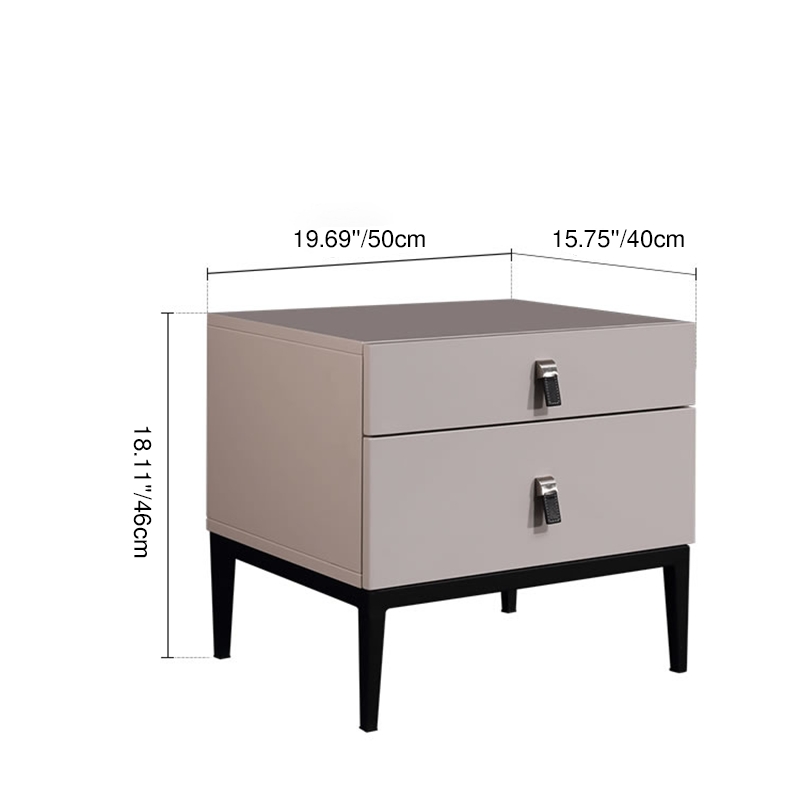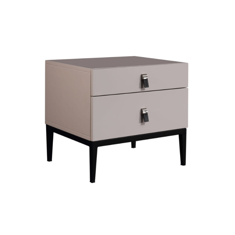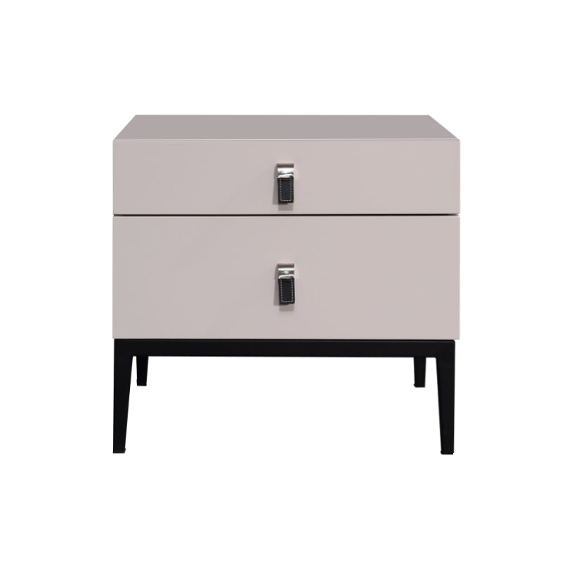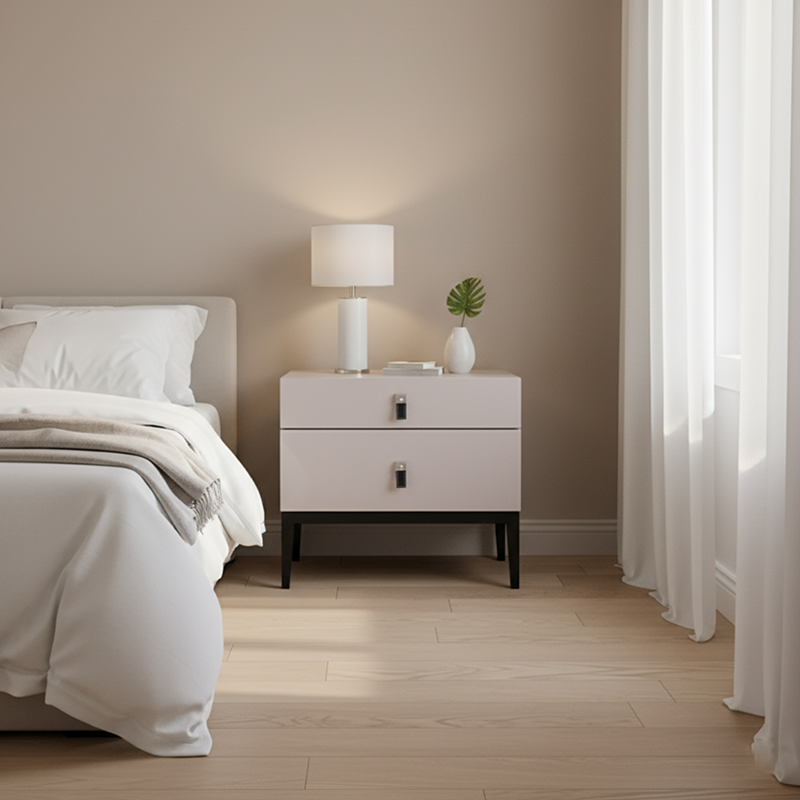The ease of contemporary Scandinavian style lies in this nightstand. The light-toned cabinet fits the warm atmosphere of the bedroom, crafted from selected E1-grade eco-friendly boards and medium density fiberboard (MDF). The sturdy materials balance durability, free from harmful pollution for a healthy home. The double drawers are equipped with smooth tracks, sliding without any jamming, making it easy to store bedtime essentials. The slim iron legs support stably, hiding strong load-bearing capacity under the lightweight appearance, standing firmly through every quiet night.