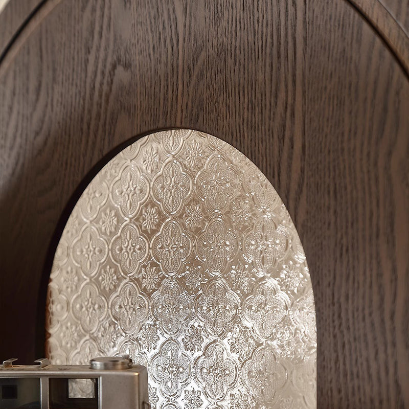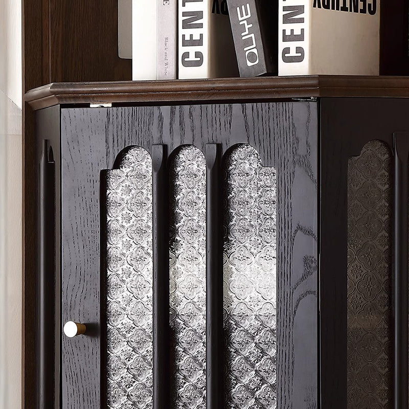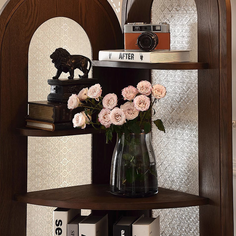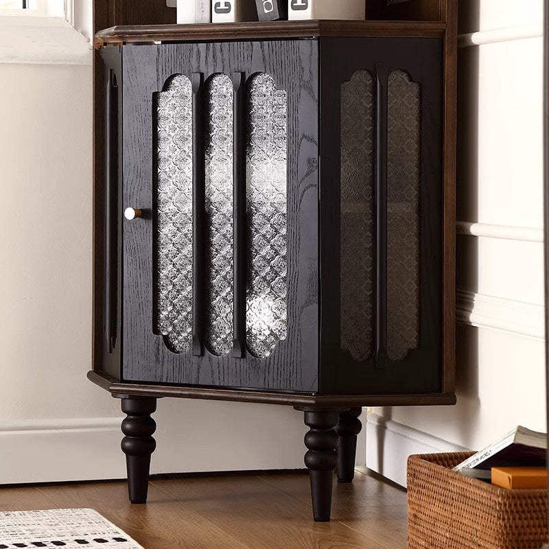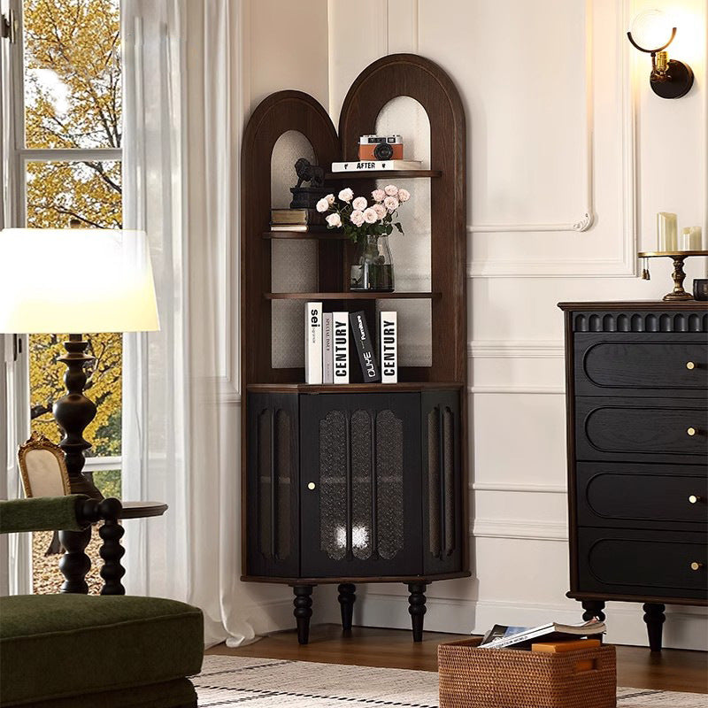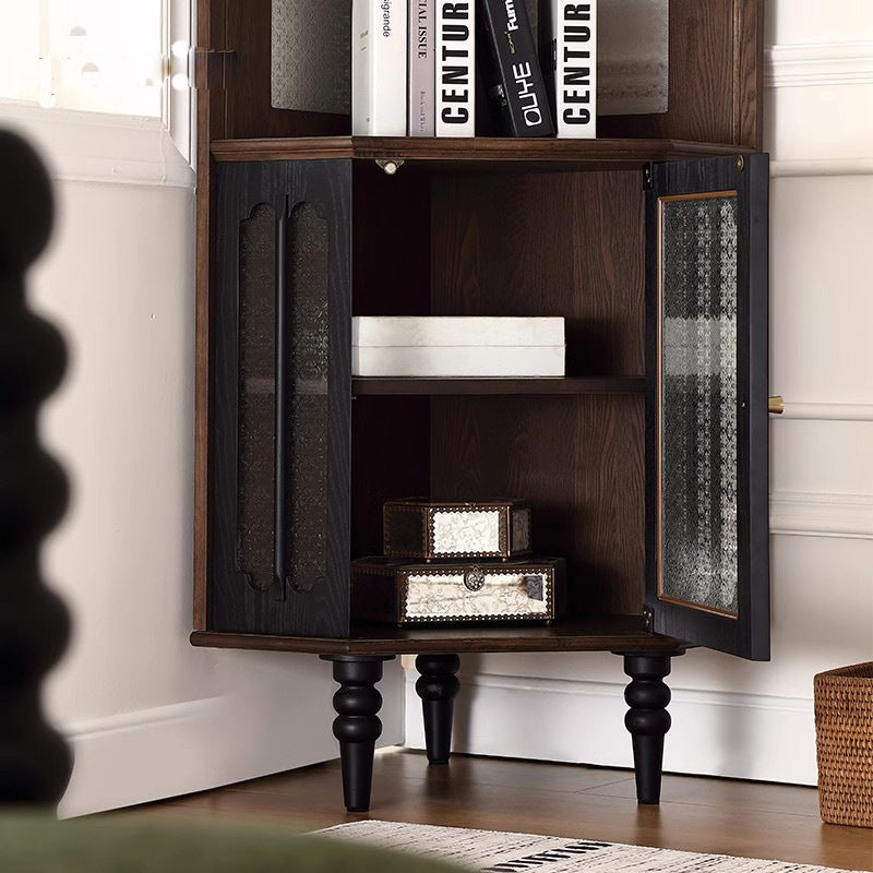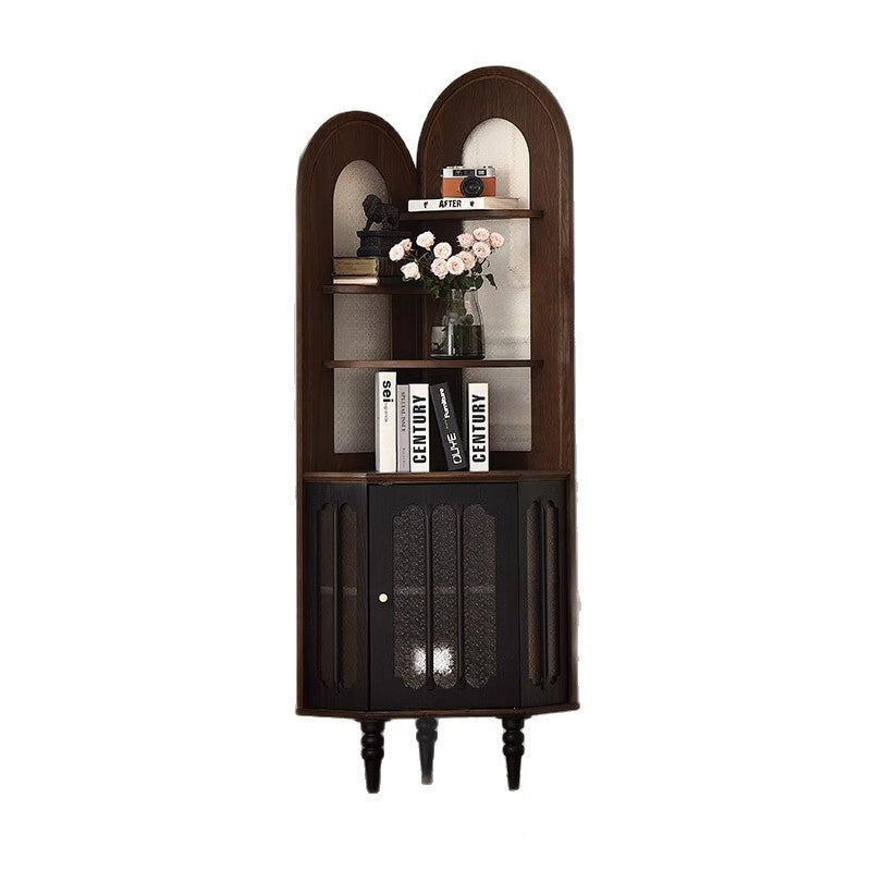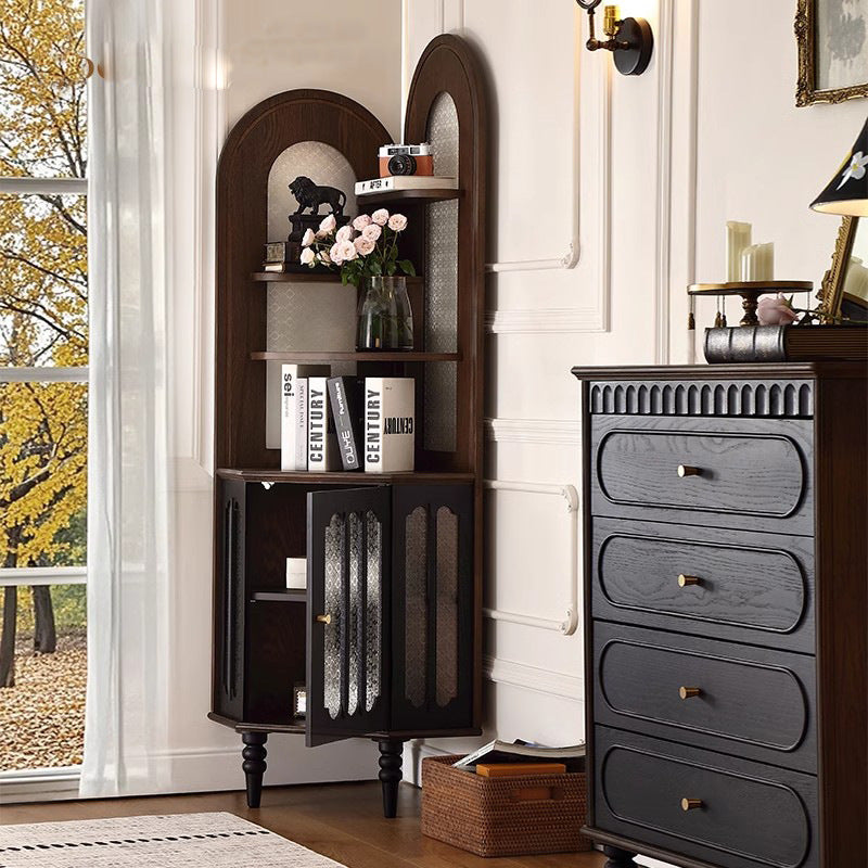 Contemporary Retro Ash Wood Solid Wood Multi-Layer Board Glass Arch Rectangular Corner Storage Cabinet 4-Tier For Living Room Bedroom
