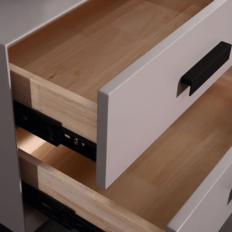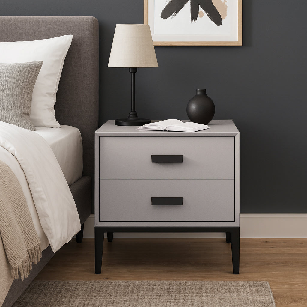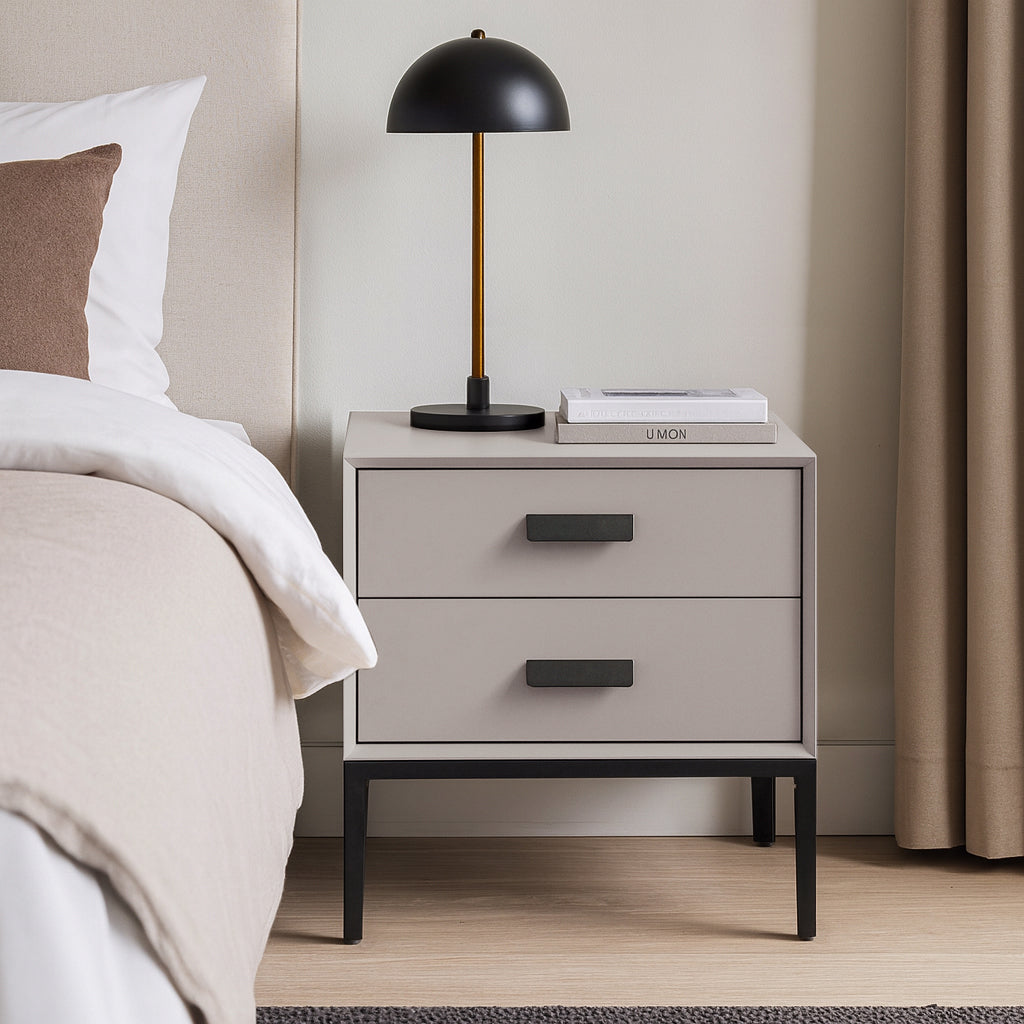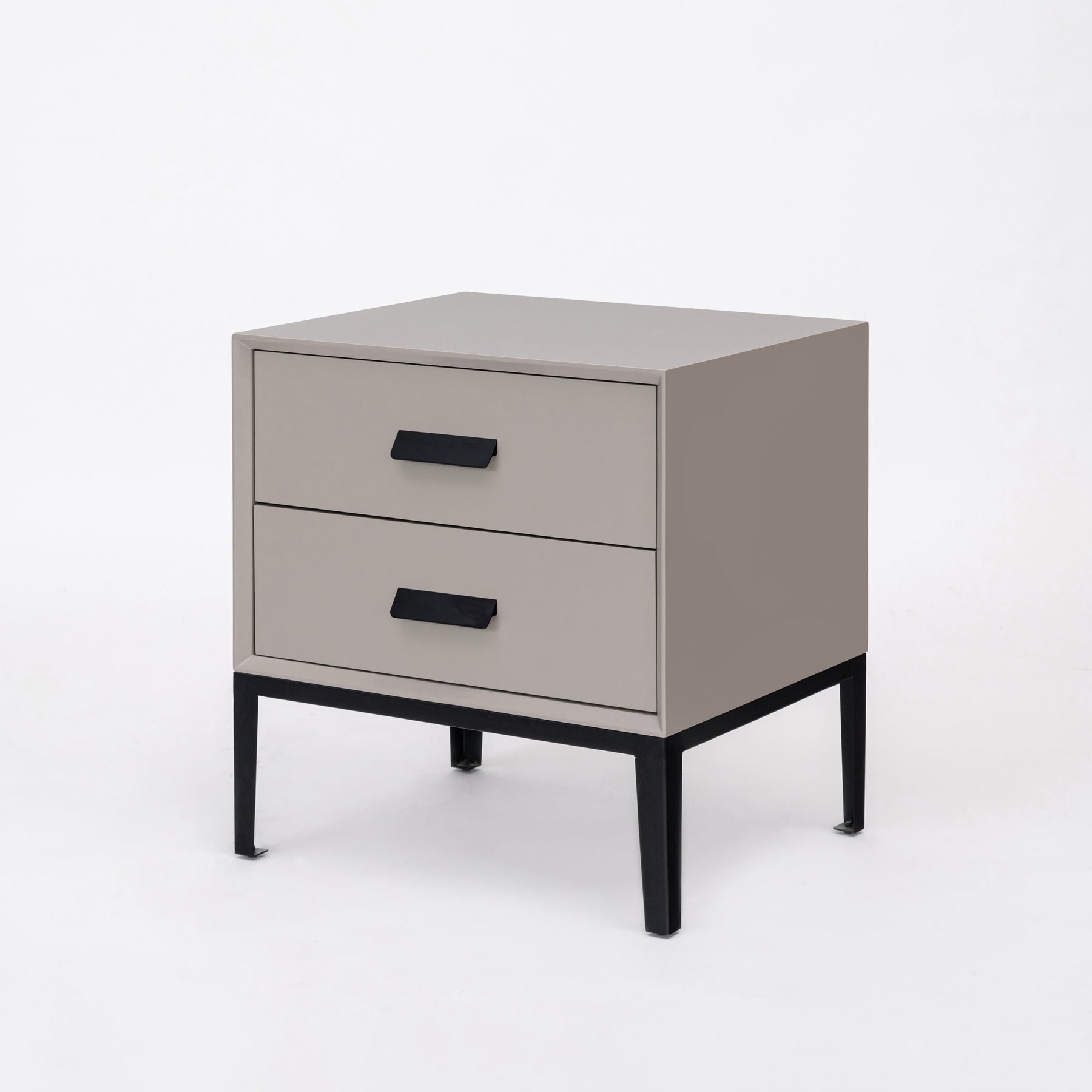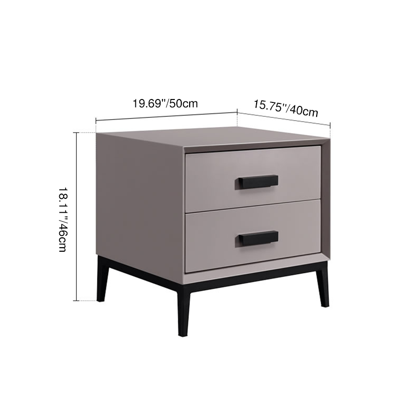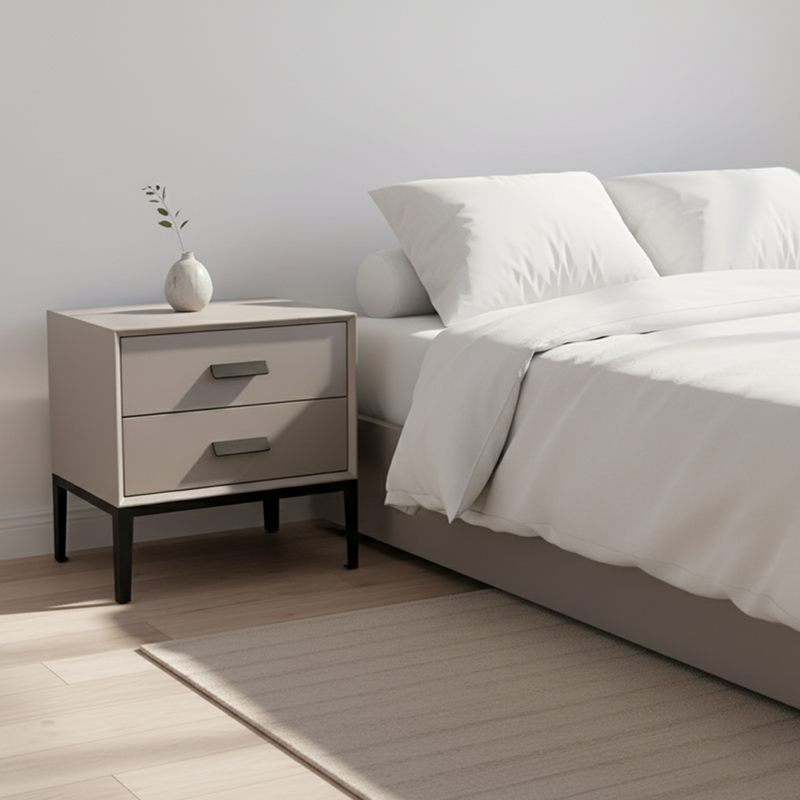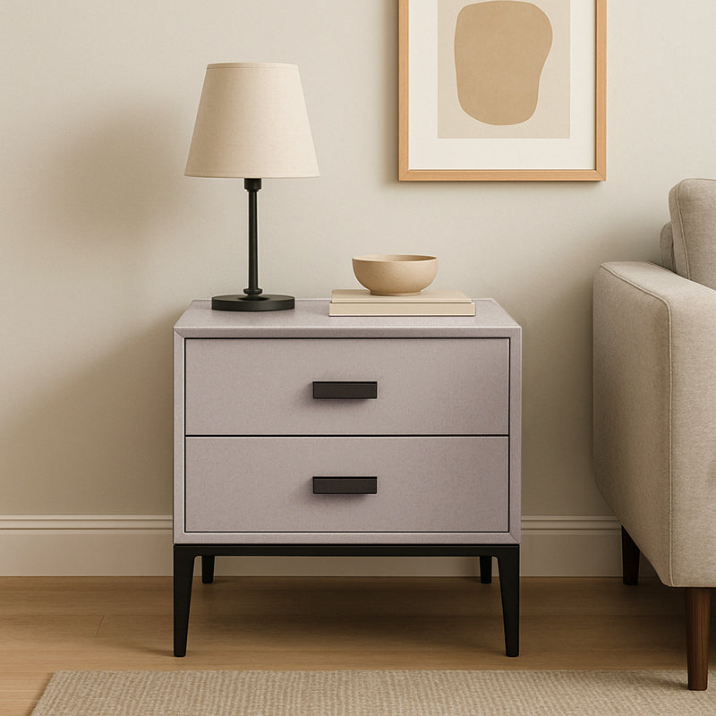 When Scandinavian minimalist aesthetics meet pragmatism, this nightstand is the perfect choice. The cabinet uses E1-grade eco-friendly boards or E1 medium density fiberboard (MDF) --- sturdy materials balance durability and health, free from harmful substances. The double drawers are fitted with smooth tracks, opening and closing seamlessly without jamming, easily storing bedtime essentials; slim iron legs support stably, boasting a light visual feel and hidden strong load-bearing capacity. Place it by the bed, and it infuses the bedroom with a relaxed Scandinavian living atmosphere.