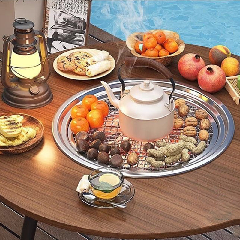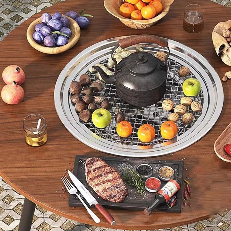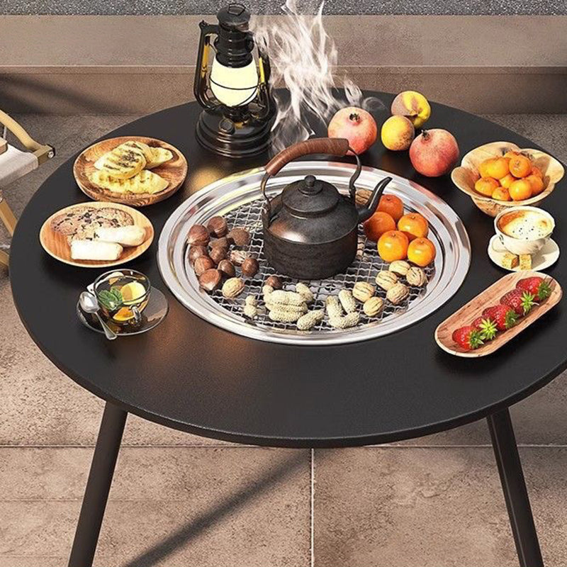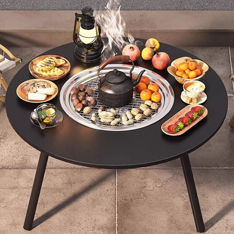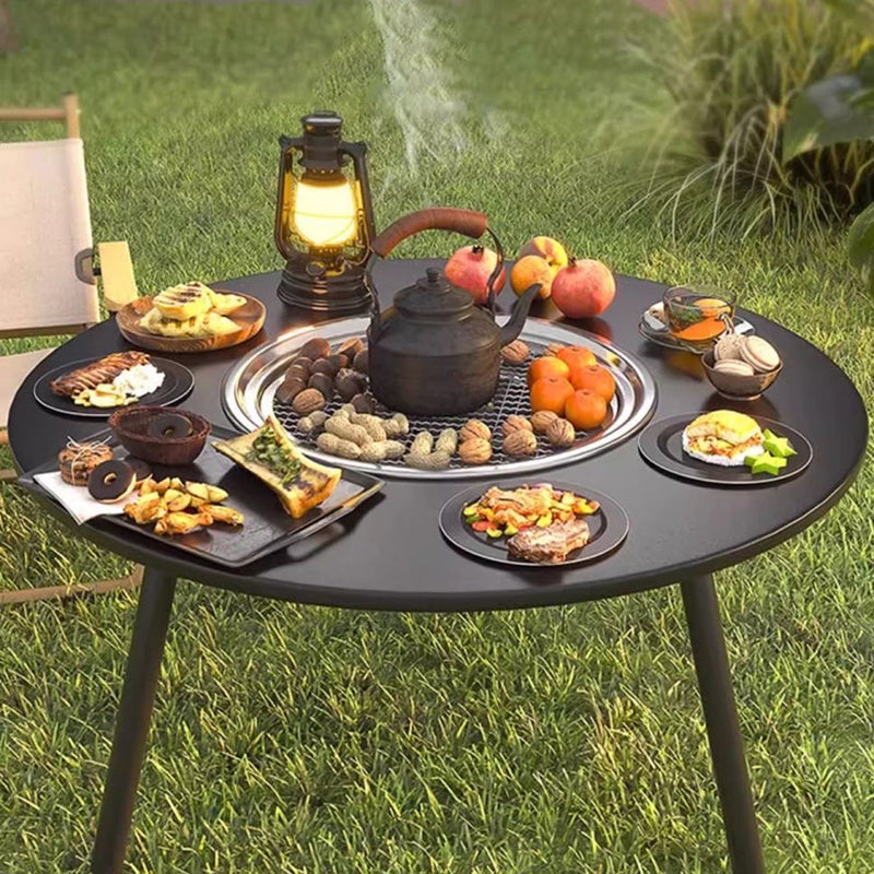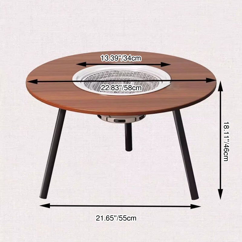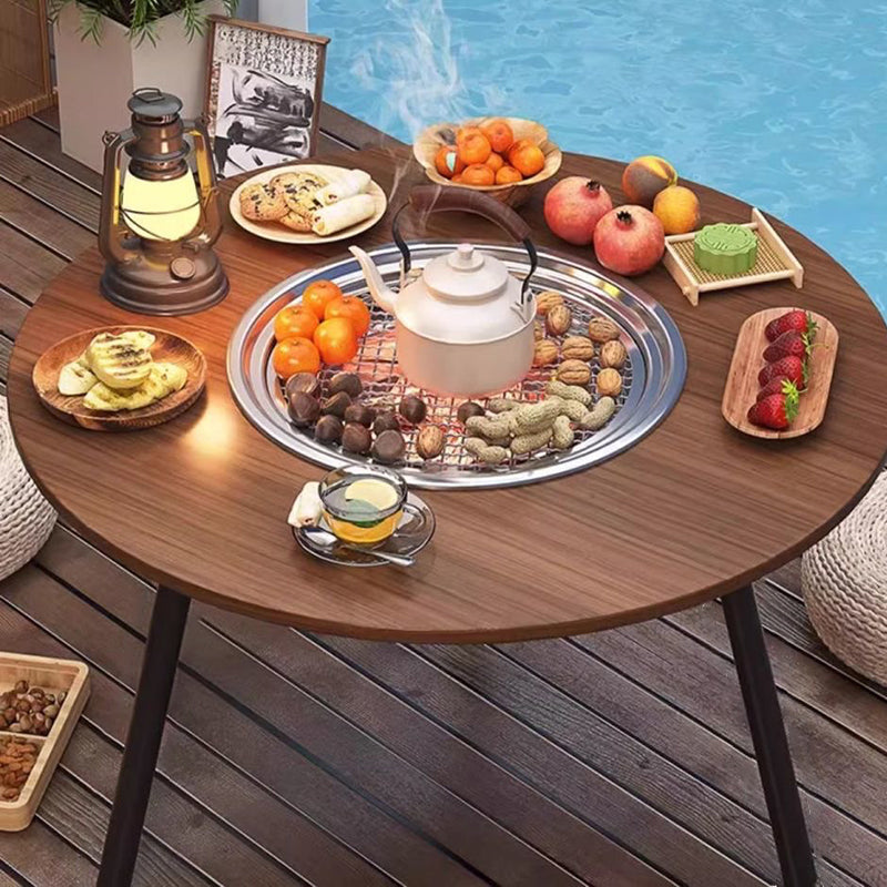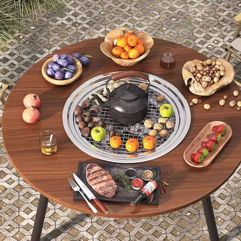 Crafted for the modern outdoor space, this versatile foldable dining table is constructed from durable wood, stainless steel, and iron, ensuring a stable and long-lasting structure. It features an innovative built-in charcoal grill design that facilitates a smokeless backyard cooking experience. Finished in sophisticated walnut wood and black tones, this table is the ideal, stylish solution for gardens, patios, and memorable outdoor gatherings.
