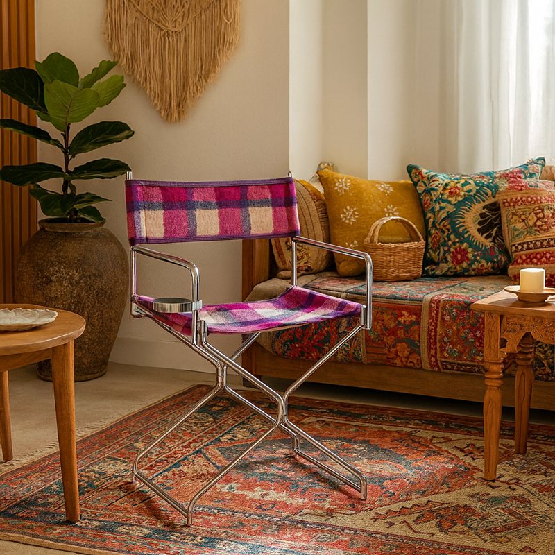 Inspired by timeless Parisian elegance and the refined look of classic woven tweed, this Folding Director's Chair brings effortless, high-end charm to any space, indoors or out.