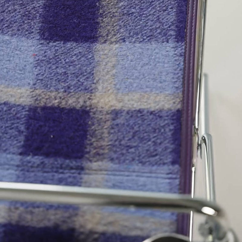 The gleaming chrome-plated metal frame provides a foundation of sleek, modern design. It's perfectly complemented by the durable, hand-woven plaid fabric, which offers superior comfort and undeniable character.