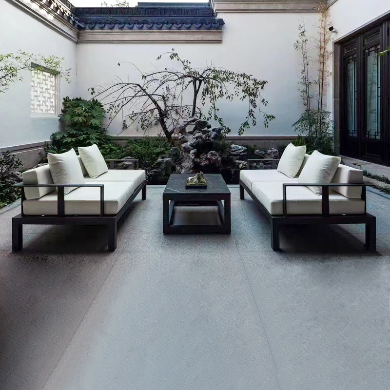 Modern Minimalist Rectangular Aluminum Alloy Fabric Sponge Accent Chair Backrest Armrest For Outdoor Patio