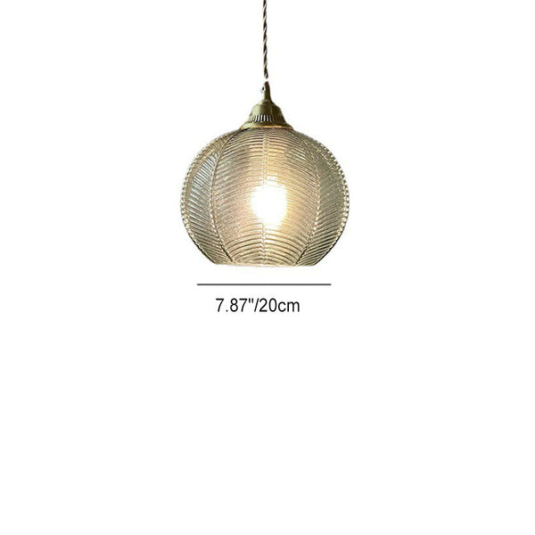 Contemporary Creative Round All Brass Striped Glass 1-Light Pendant Light For Living Room