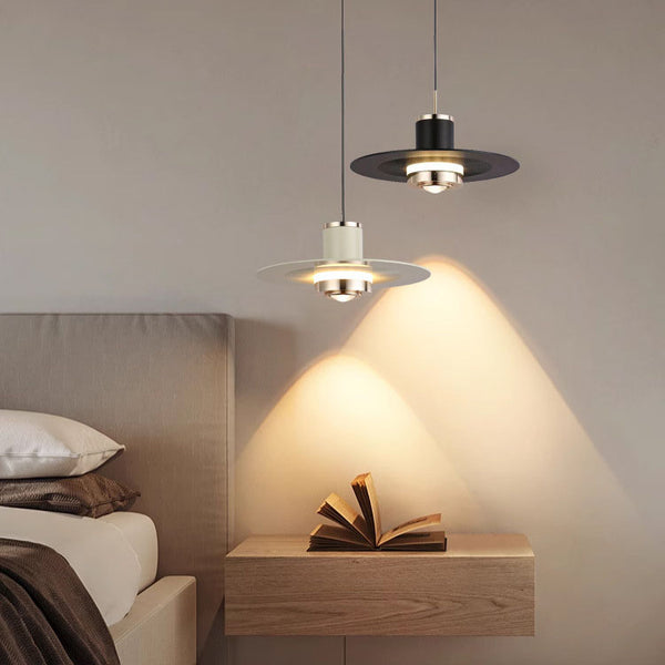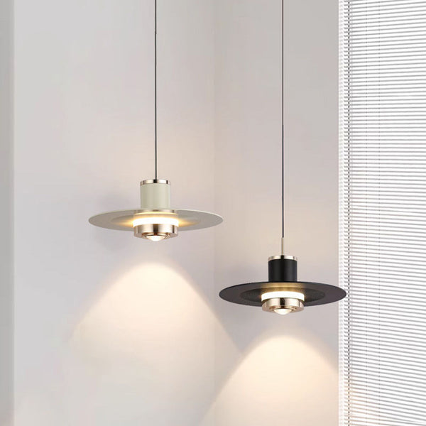 Modern Minimalist Cylinder Flying Saucer Hardware LED Pendant Light For Living Room