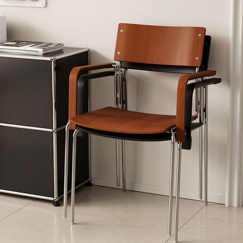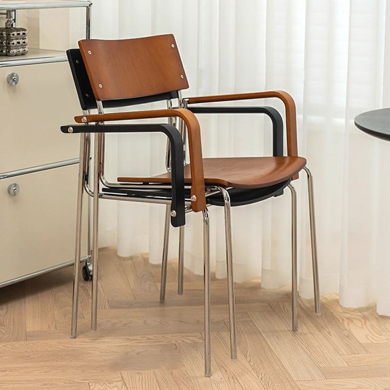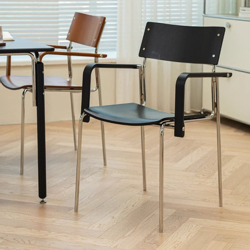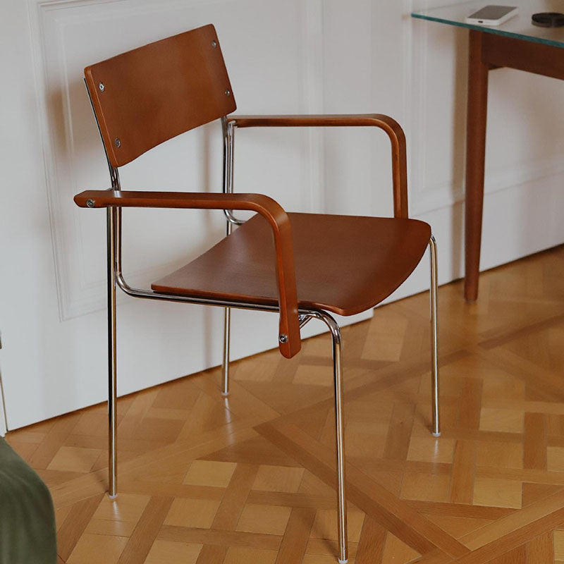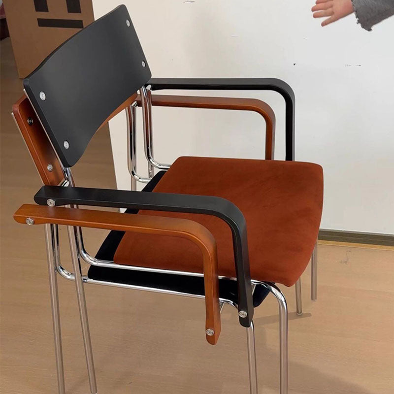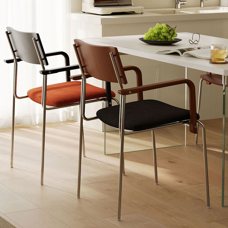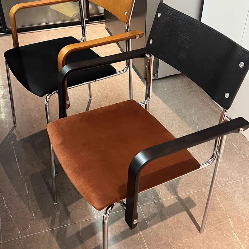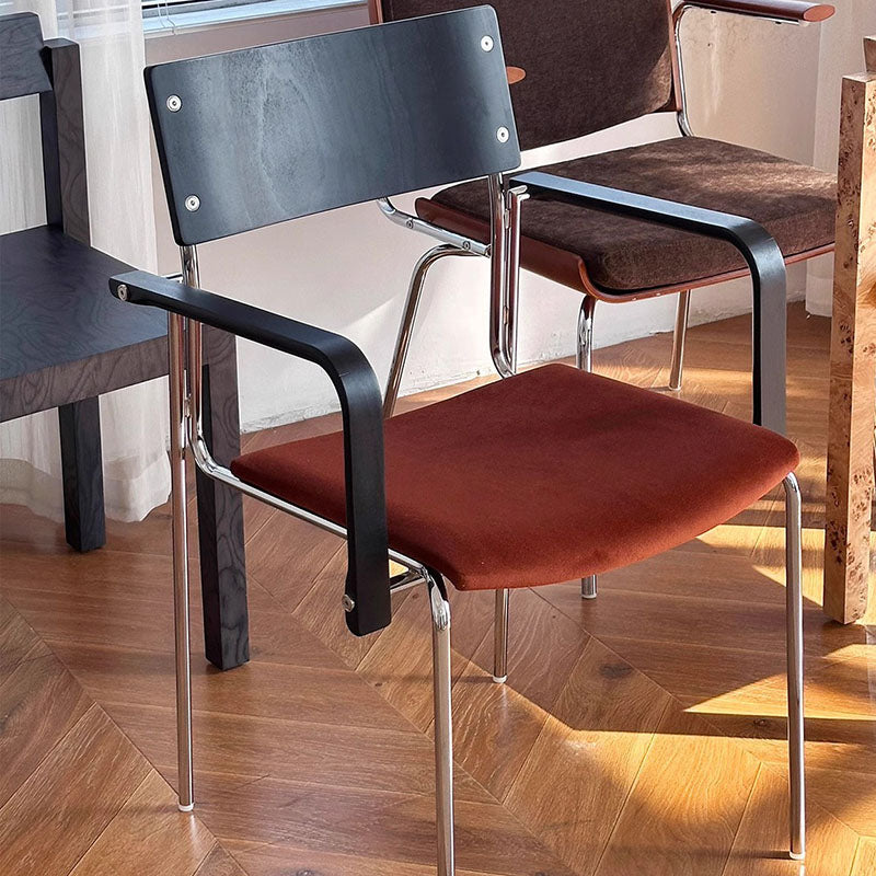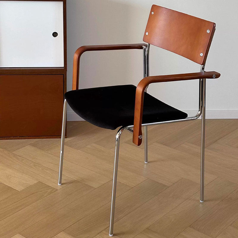 This vintage-inspired dining chair combines solid wood, iron, and soft fabric for a timeless modern look. Available in classic black and warm mid-century tones, it offers a sturdy build, comfortable backrest, and armrests perfect for creating a refined dining experience at home.