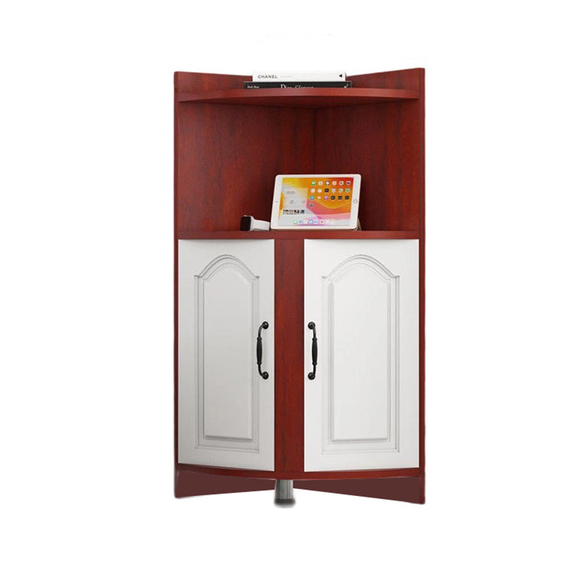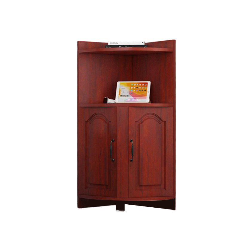 Contemporary Nordic Triangular Solid Wood MDF Corner Shelf Unit With 2-Cabinet 2-Tier For Living Room