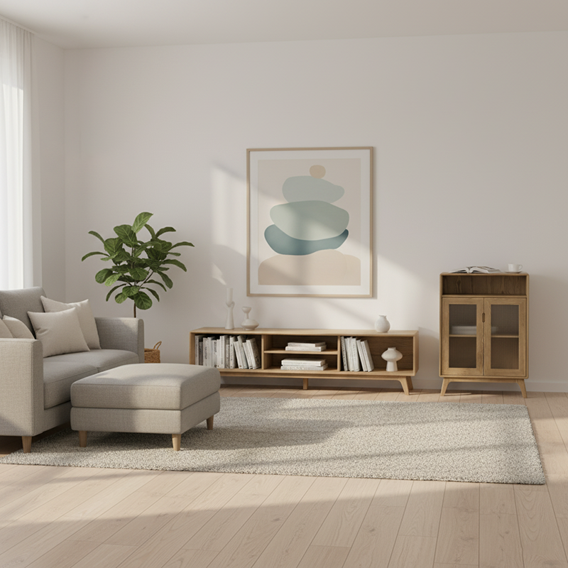 - Shape Advantage: Rectangular silhouette, fits into living room, dining room and other scenes.