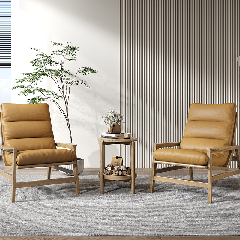 Blending contemporary Scandinavian design with imported North American ash wood and rock slab, this round coffee table (tall/short options) elevates living room elegance. The hard, wear-resistant ash wood features clear natural grains, eco-friendly properties, and four sturdy supporting legs. With a warm ash wood top and practical rock slab lower shelf, the double-layer design balances beauty and function. Both the layered tall version and minimalist short one bring natural refinement to your space via Scandinavian clean lines---every placement reflects exquisite living quality.