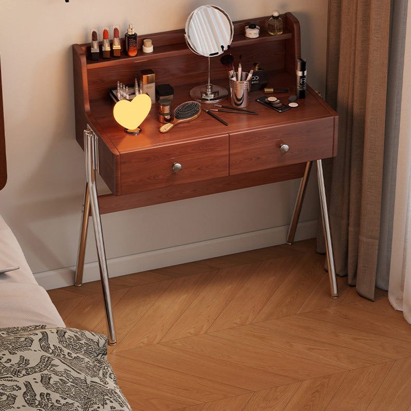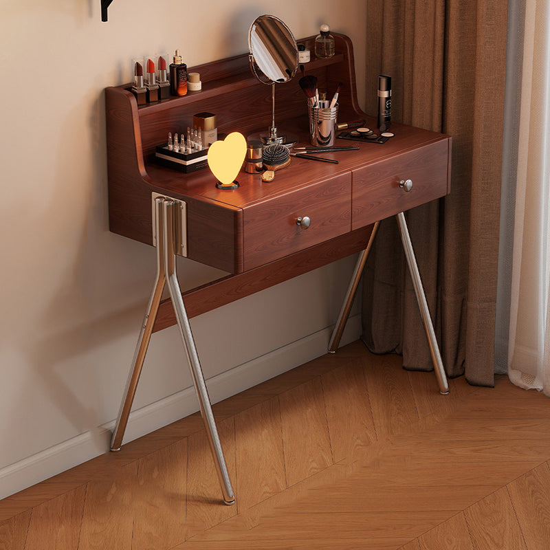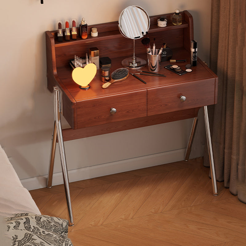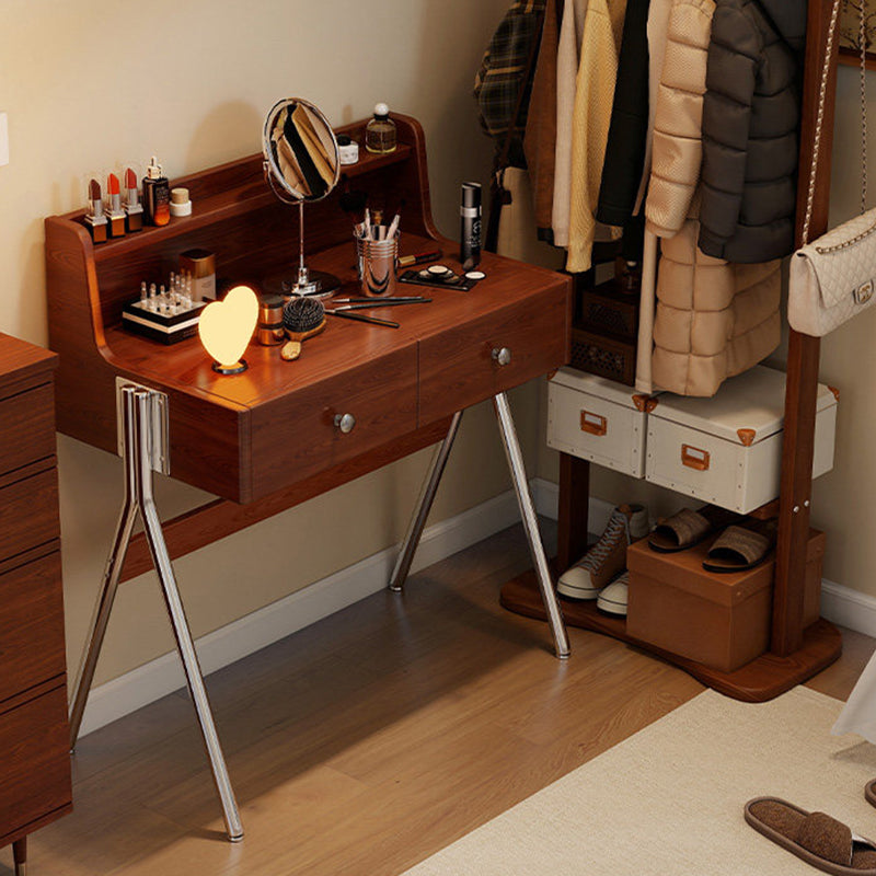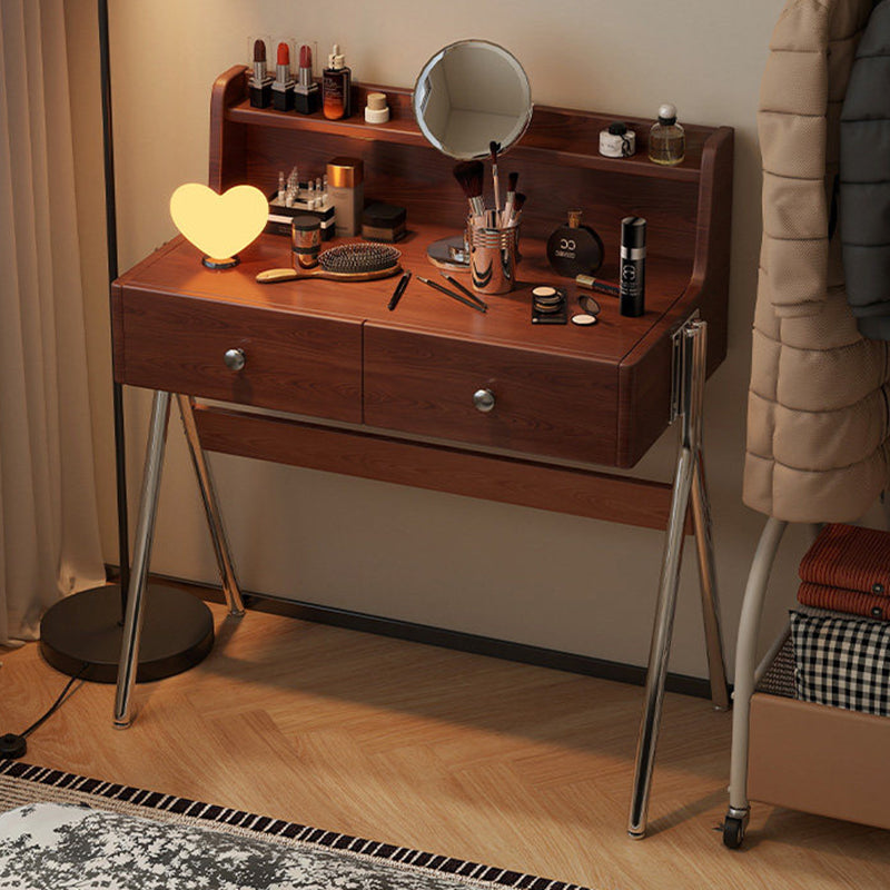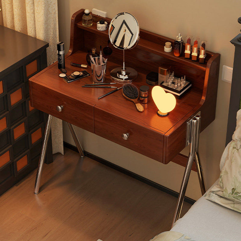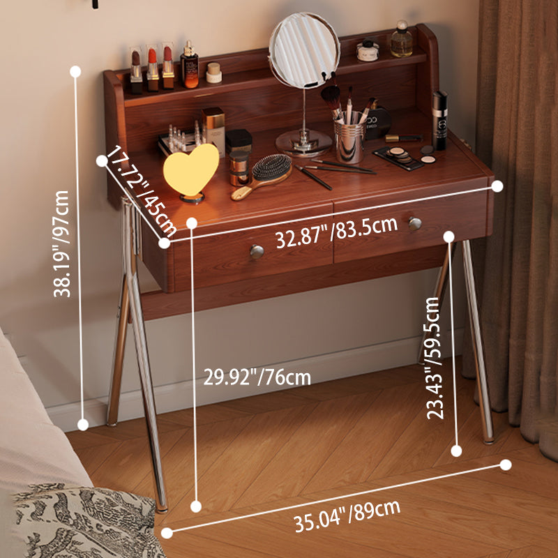 Add style and functionality to your bedroom with this retro contemporary vanity. Made from solid rubberwood with a natural grain finish, it features two roomy drawers for convenient storage and sturdy polished stainless steel legs for long-lasting stability. Its compact rectangular design fits perfectly in small or modern bedrooms.